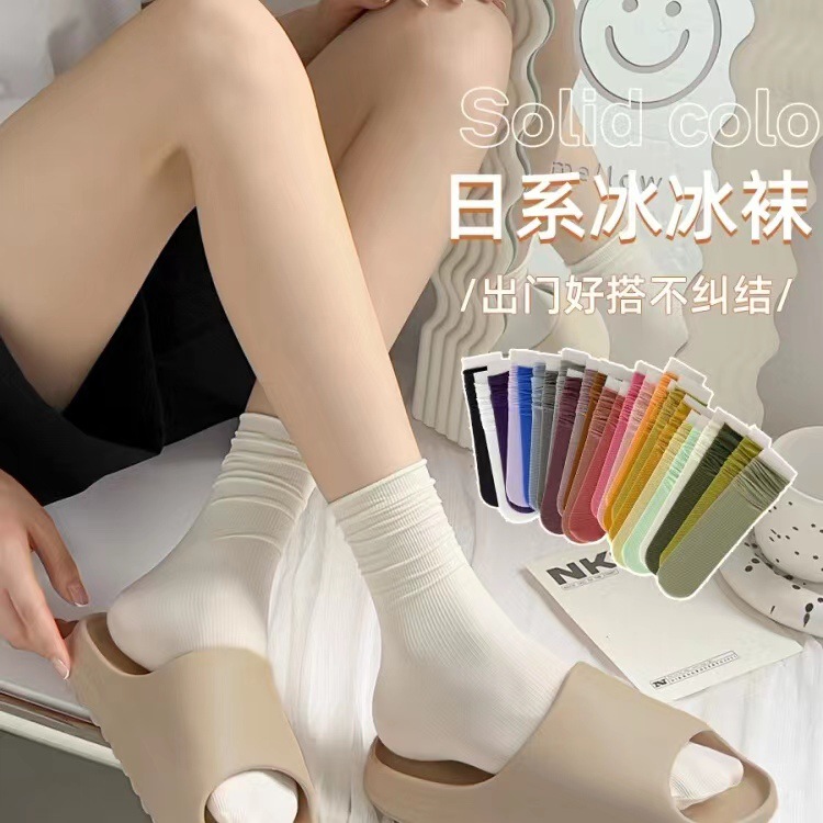| nameOriginal | Summer Thin Candy Color Ice Socks Japanese Style Mid-length Socks Velvet Piled Socks Ice Sense Socks Women's Spring and Summer Stockings |