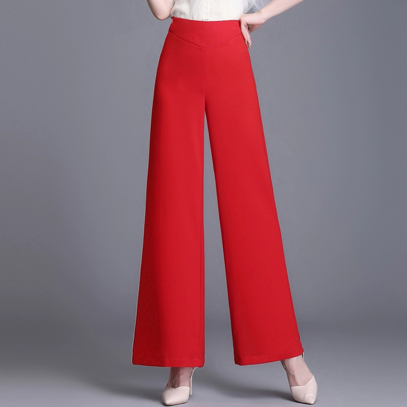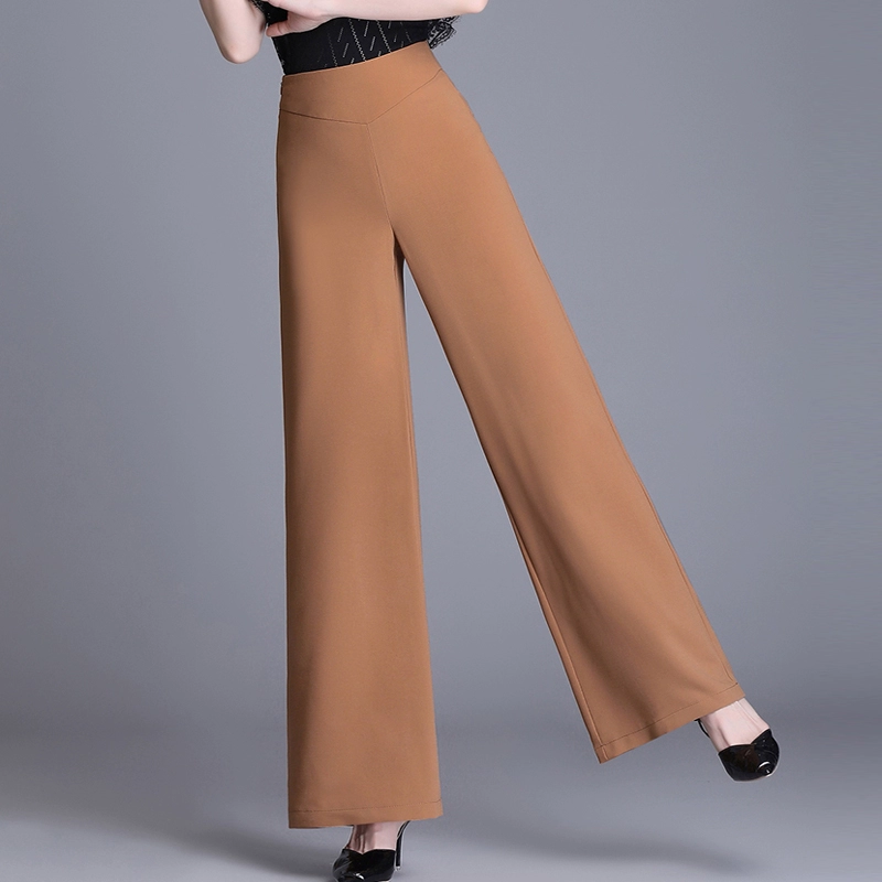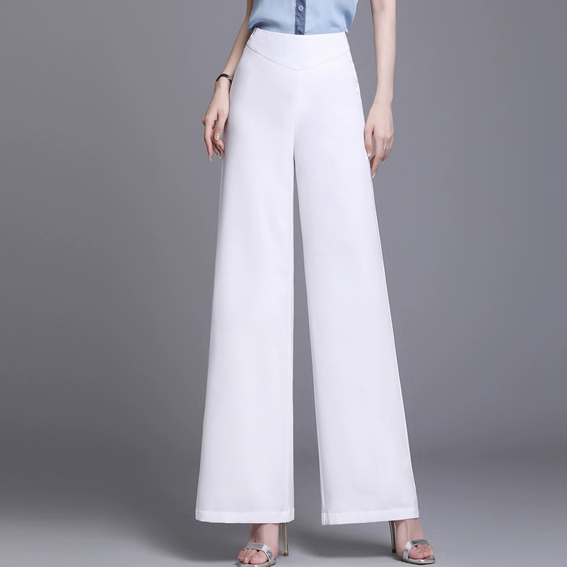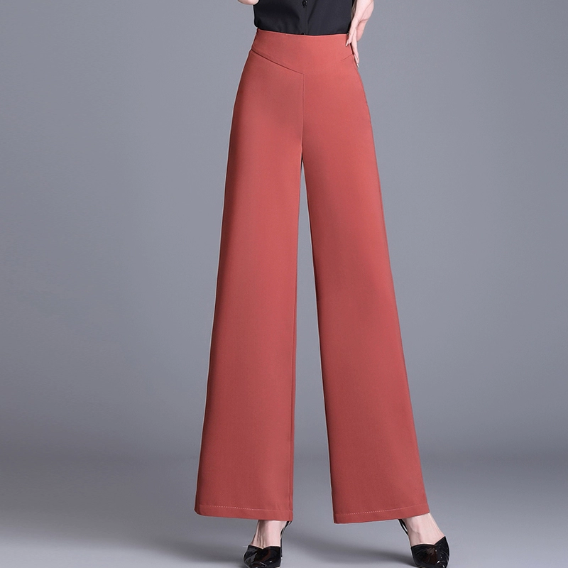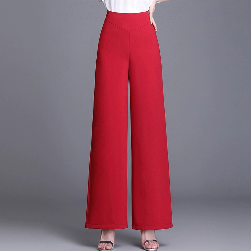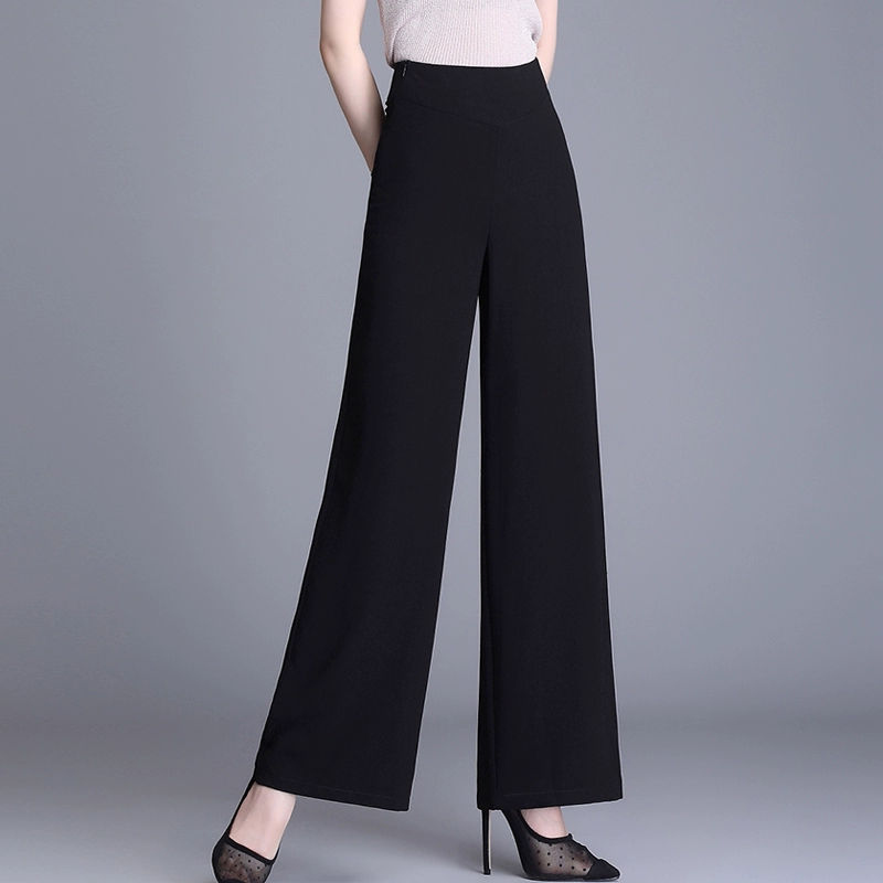 Summer thin chiffon wide-leg pants for women, drapey and elegant straight-leg pants, floor-length invisible side zipper casual large size pants