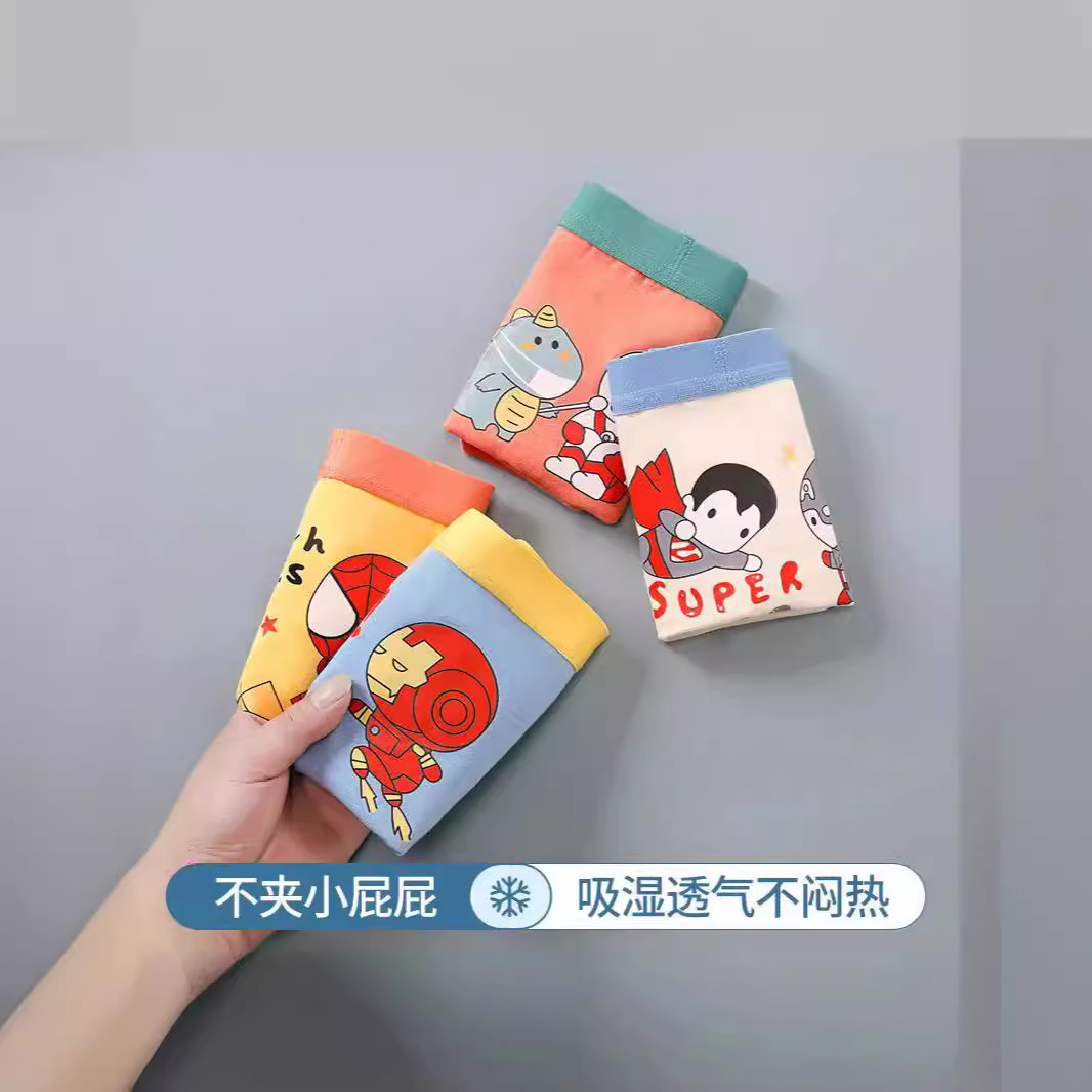 Summer Thin Cotton Boxer Shorts Triangle Children's Underwear Men's Breathable Cotton Class A Cartoon Small, Medium and Large Children