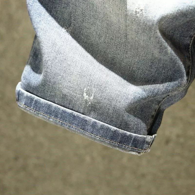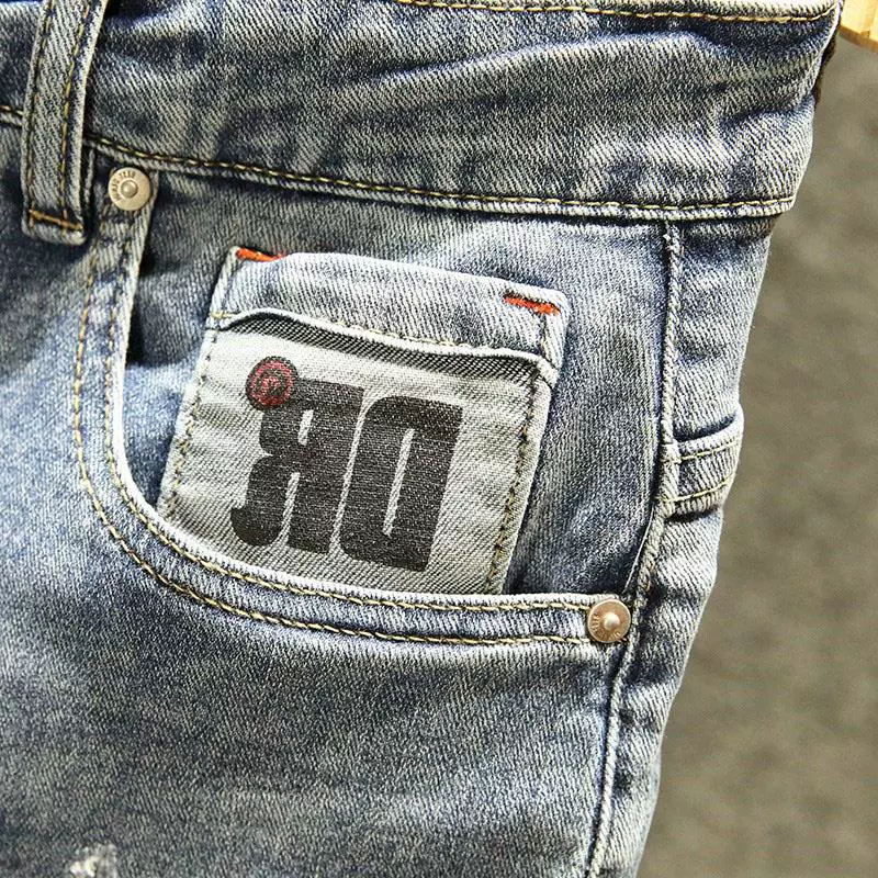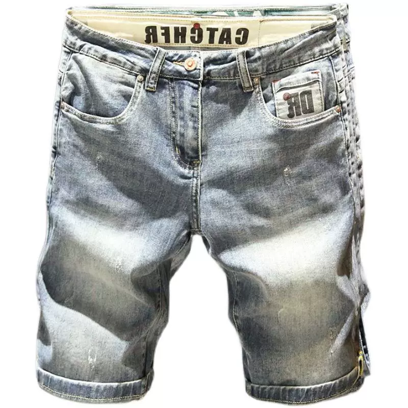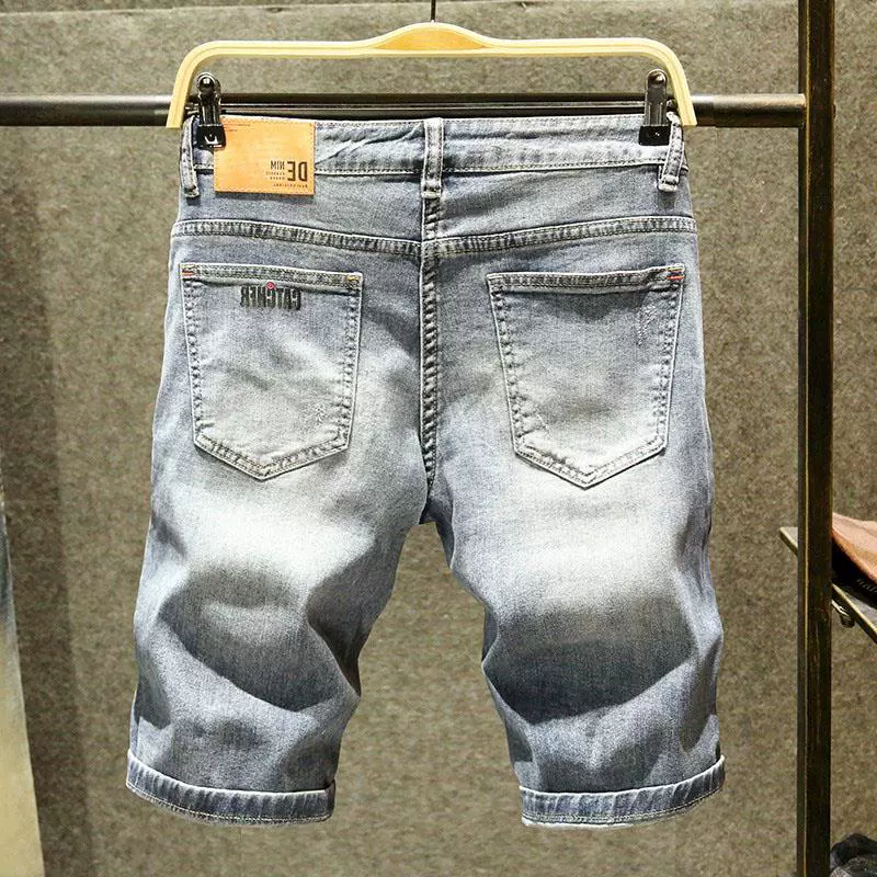 Summer thin denim shorts men’s trendy slim fit pants blue trendy brand ins mid-pants versatile casual breeches