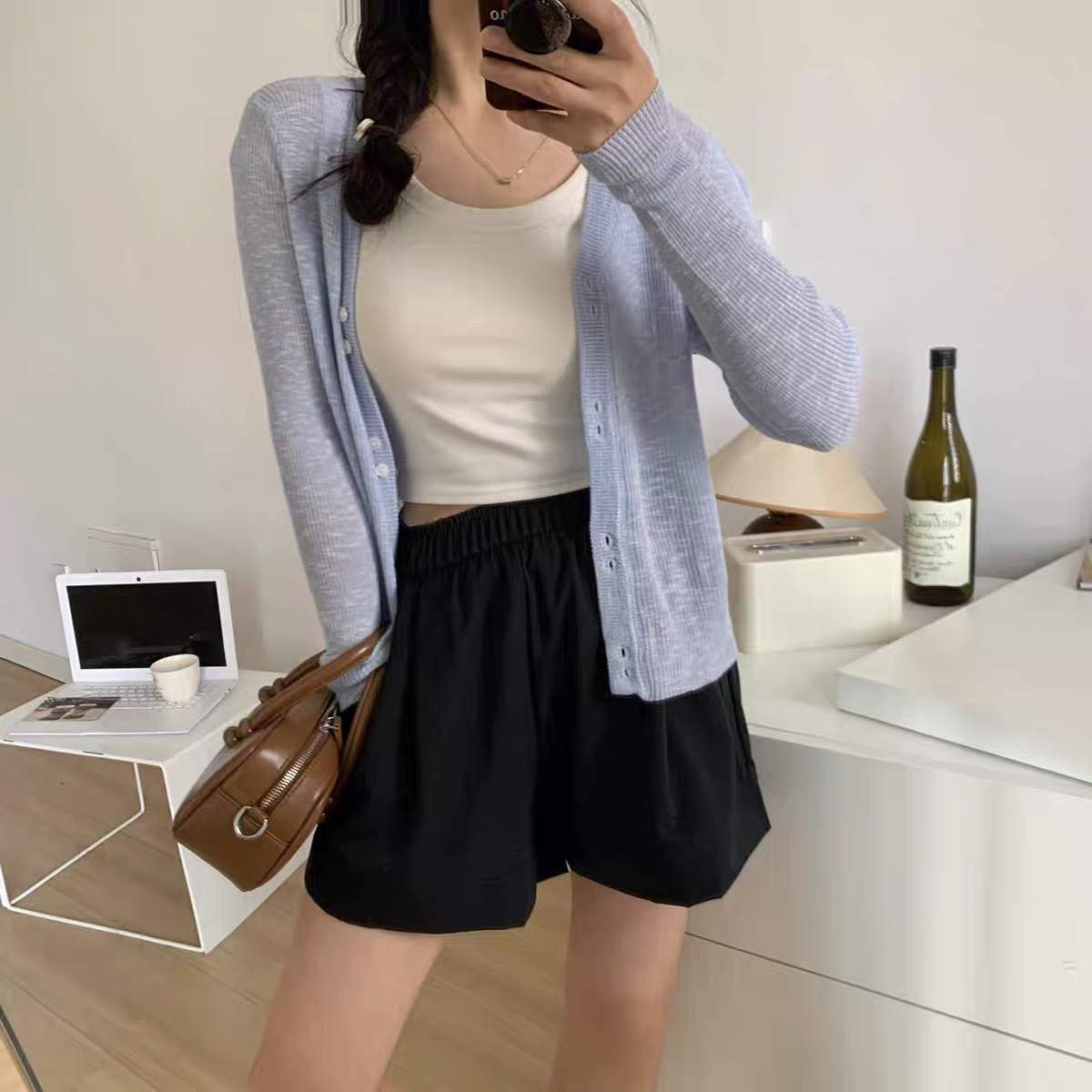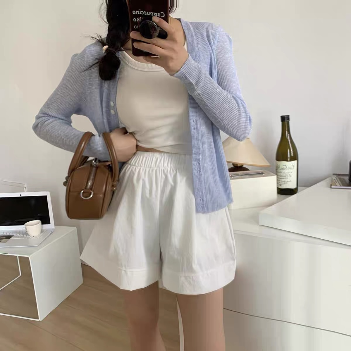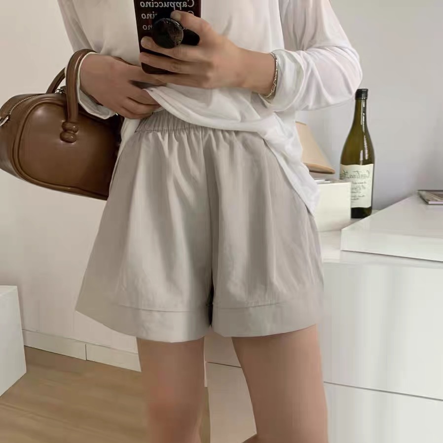 | nameOriginal | Summer Thin Elastic High Waist Slimming Casual A Version Shorts Women's Full Score Pants Solid Color Simple Wide Leg Hot Pants |