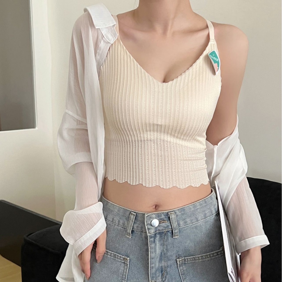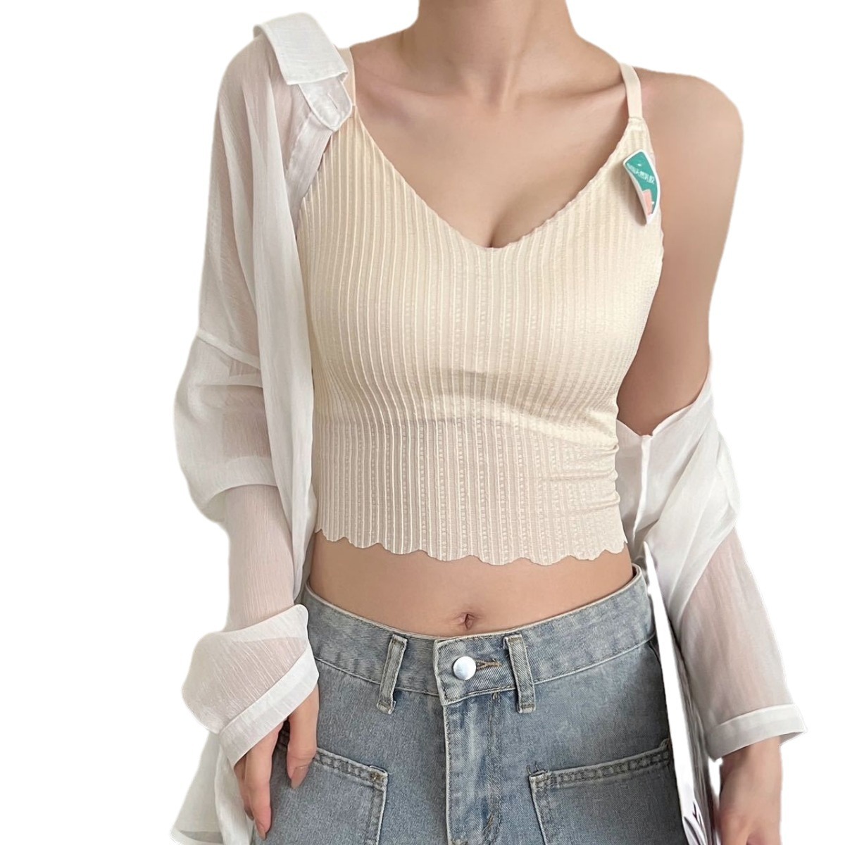 | nameOriginal | Summer Thin Girl Sling Beautiful Strap Chest Pad Outer Wearing Vest Long V-Neck All-Match Small Sexy Underwear |