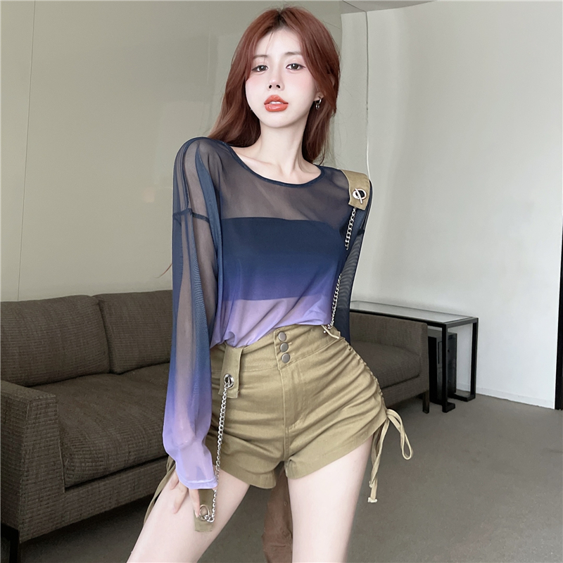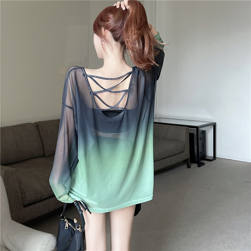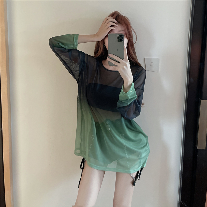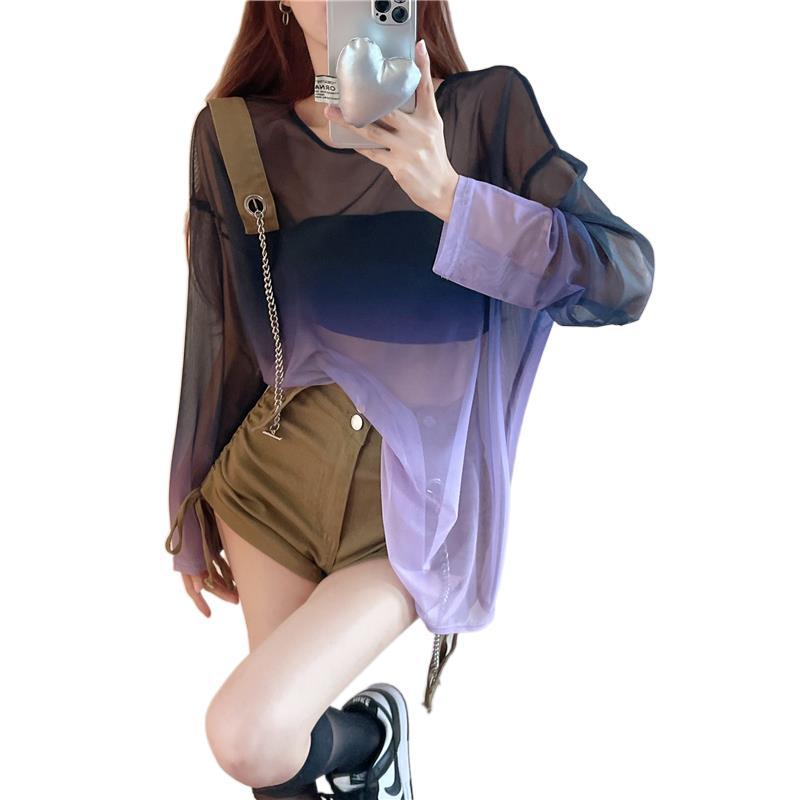 | nameOriginal | Summer Thin Gradient Long-sleeved T-shirt Women's Mid-length Design Sense Mesh Sunscreen Blouse Loose Top |