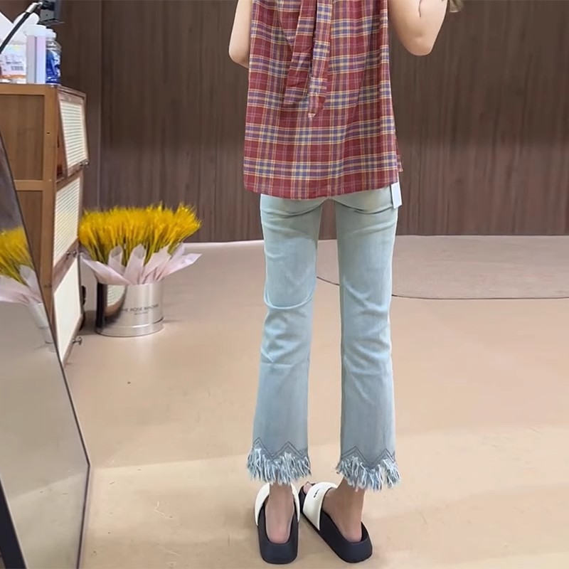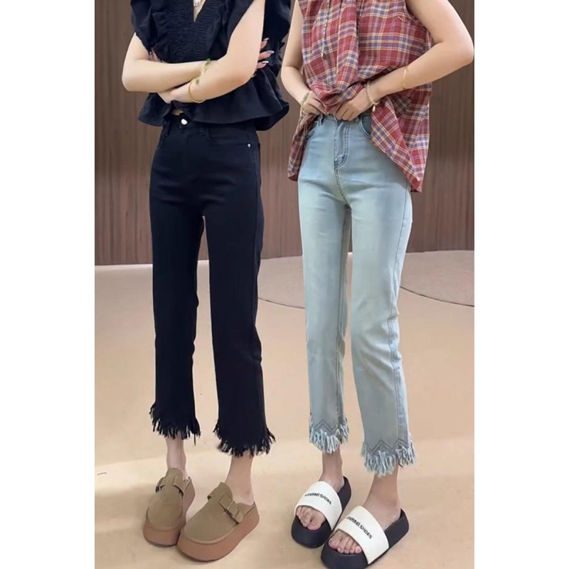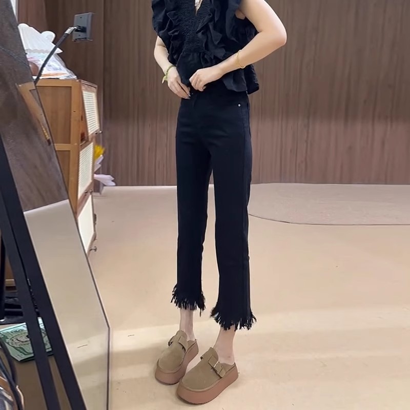 | nameOriginal | Summer Thin High Waist Black Straight Jeans 2024 New Women's Small Rough Slim Micro-flared Pants |