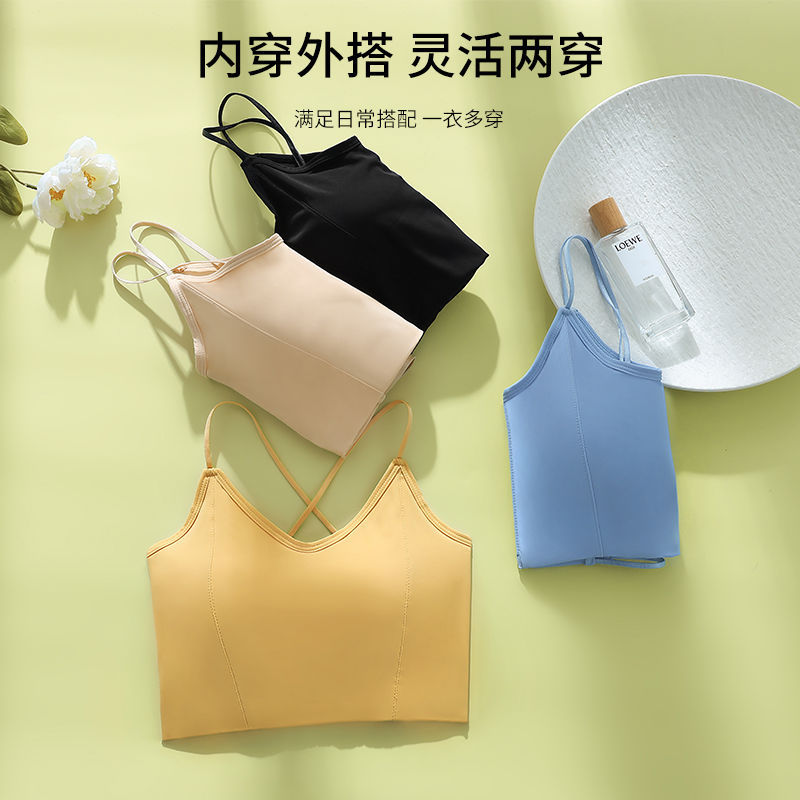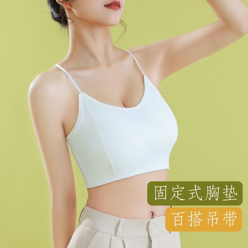 | nameOriginal | Summer Thin Ice Silk Beautiful Back Underwear Hollow Thin Shoulder Strap Without Steel Ring Tube Top Camisole Vest Women's Outer Wear with Chest Pad |