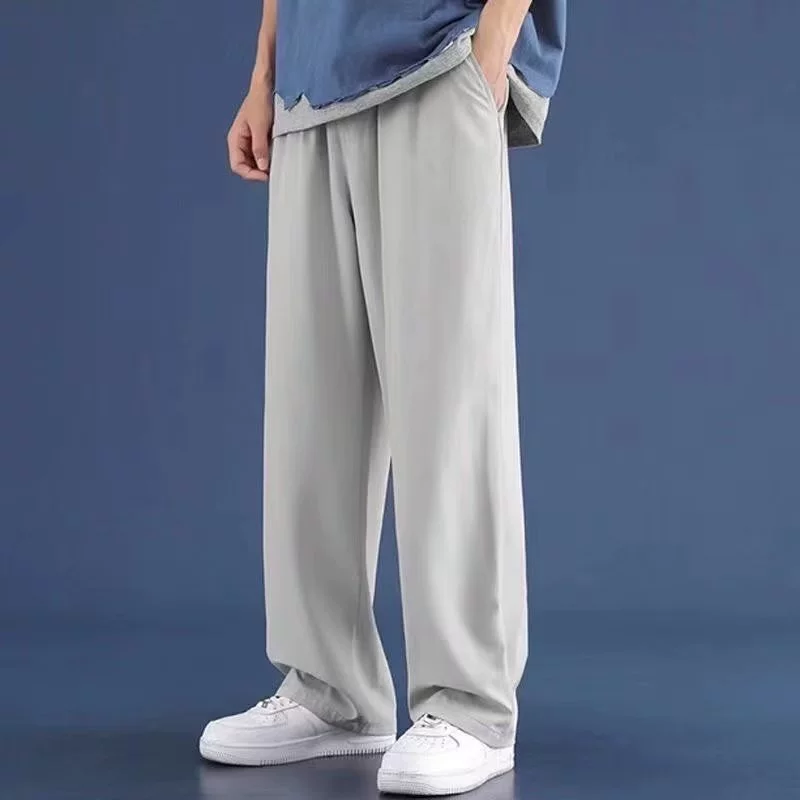 | nameOriginal | Summer thin ice silk quick-drying trousers for men, loose large size, straight wide legs, trendy elastic floor-length long trousers |