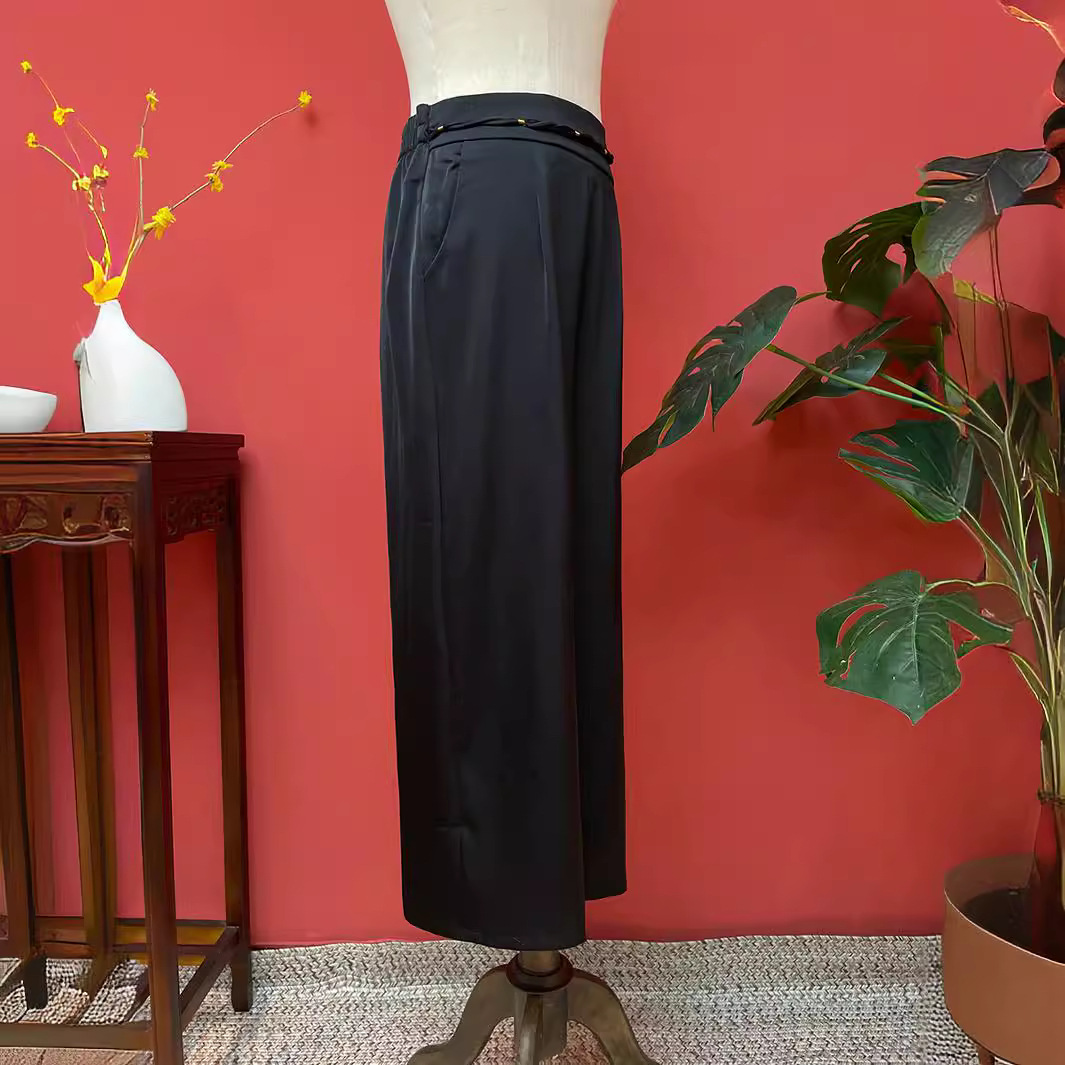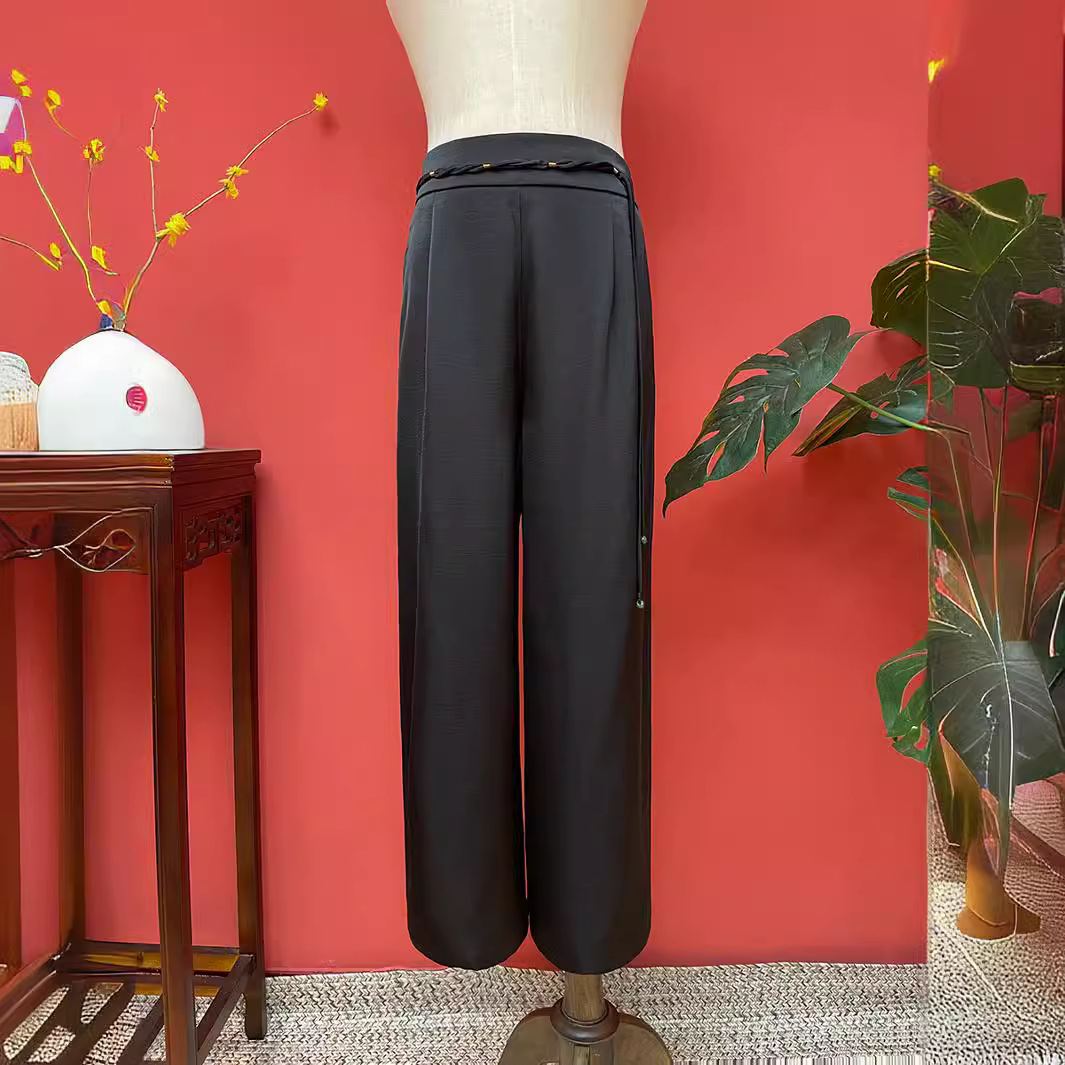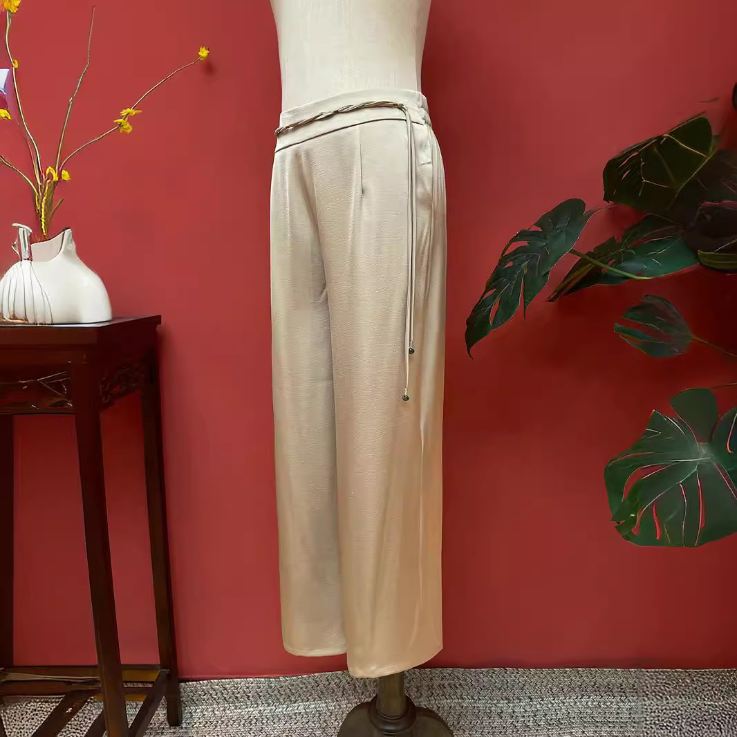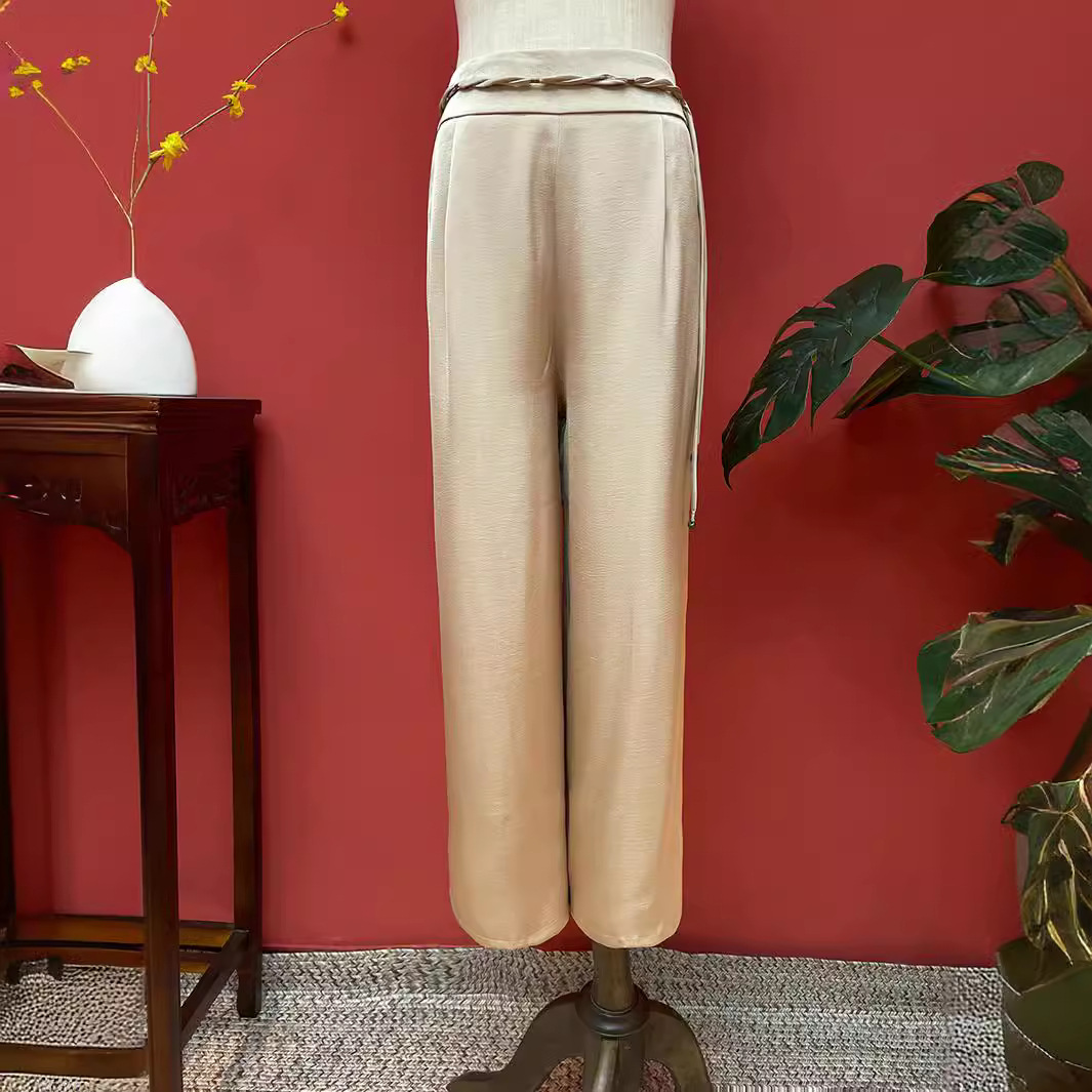 | nameOriginal | Summer Thin Imitation Acetic Acid Pants 2024 New Chinese Tang Suit Pants Flesh-Covering Slimming Tassel Button Women's Pants |