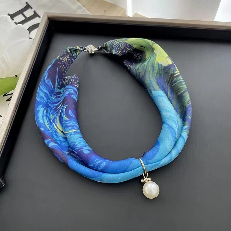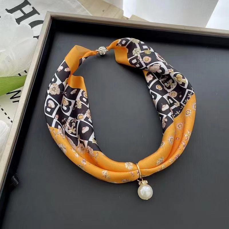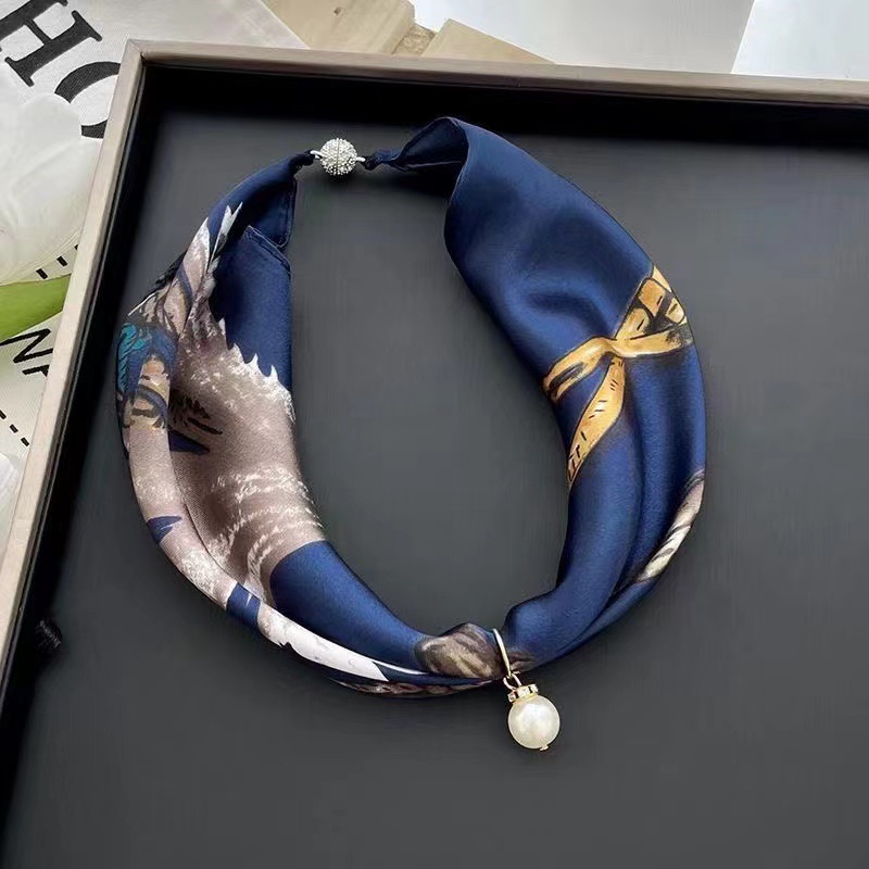 | nameOriginal | Summer thin Korean style small scarf artificial silk printed changeable small scarf women's pearl pendant necklace lazy scarf |
