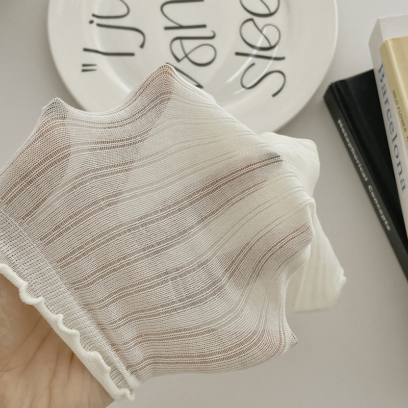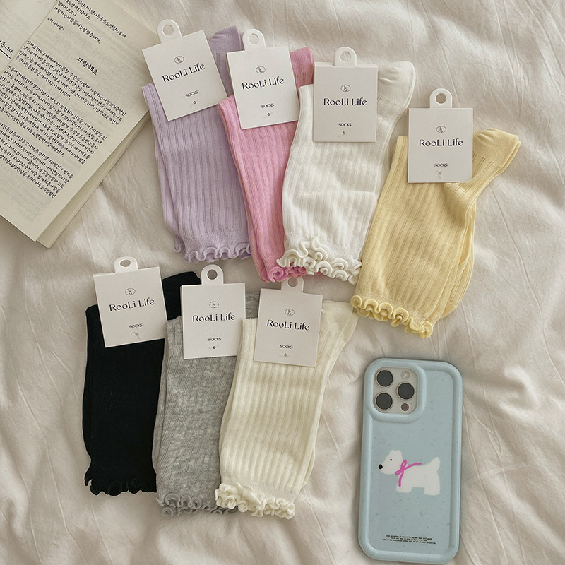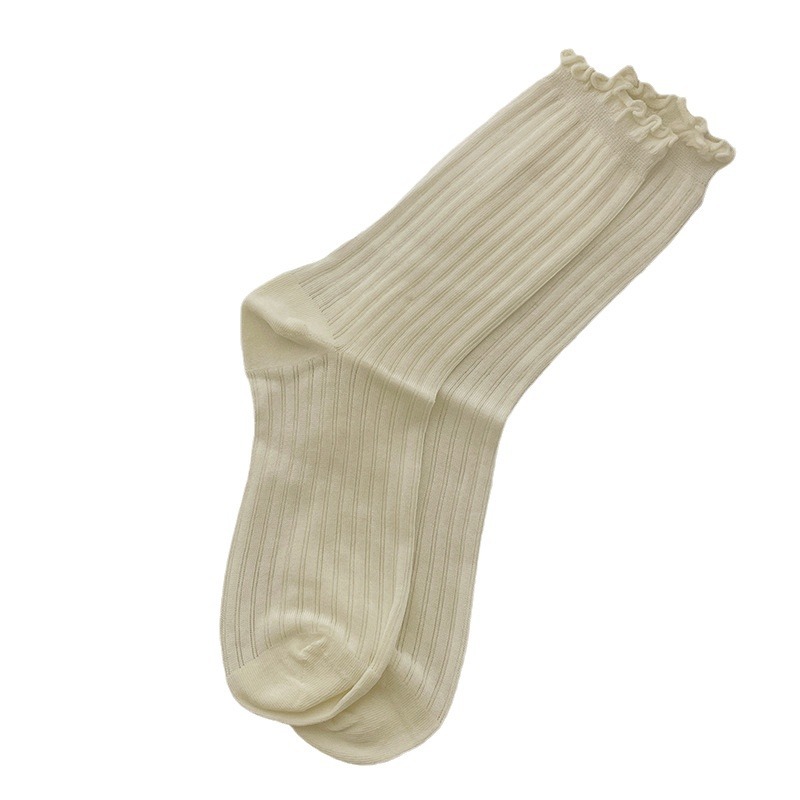 Summer Thin Lolita Pile Women’s Socks Cas Solid Color Mid-length Goddess Socks Pine Mouth Ear-edged Long Barrel Bone-free Socks