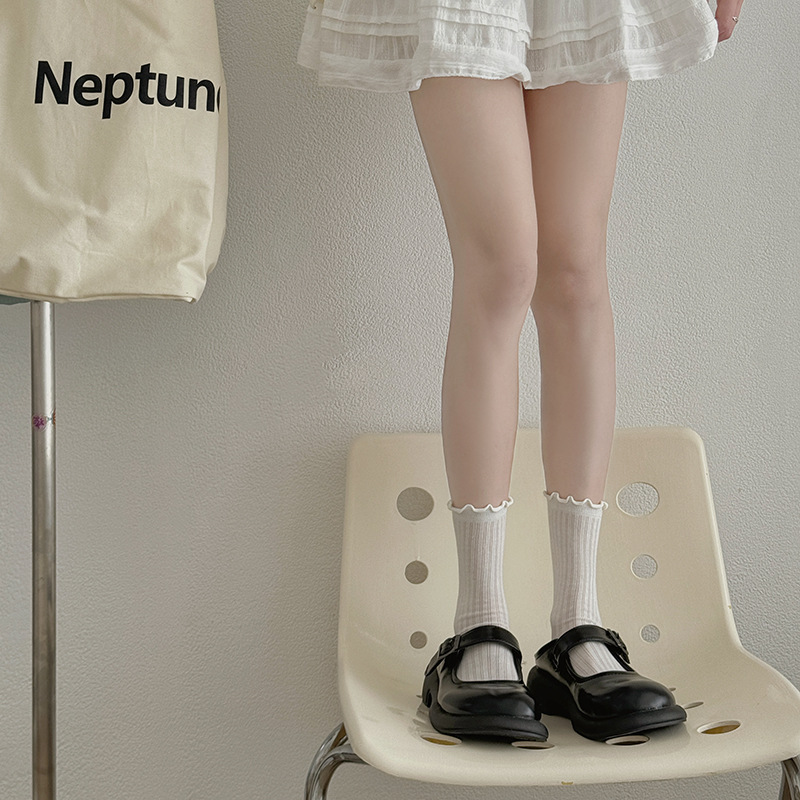Summer Thin Lolita Pile Women's Socks Cas Solid Color Mid-length Goddess Socks Pine Mouth Ear-edged Long Barrel Bone-free Socks