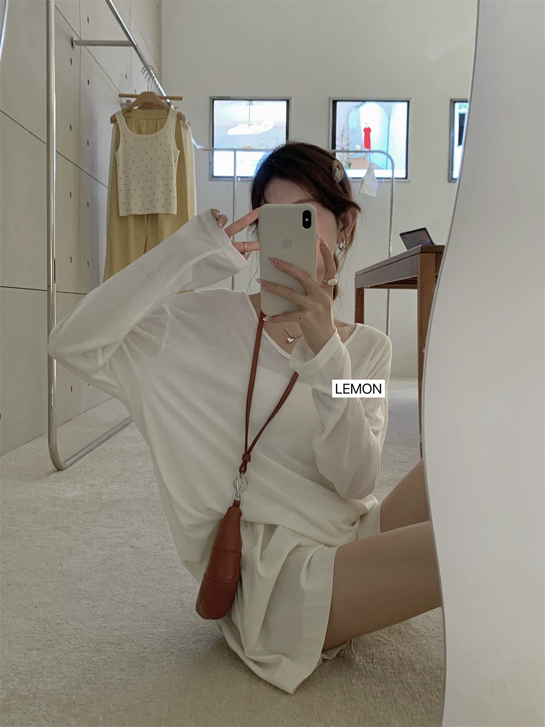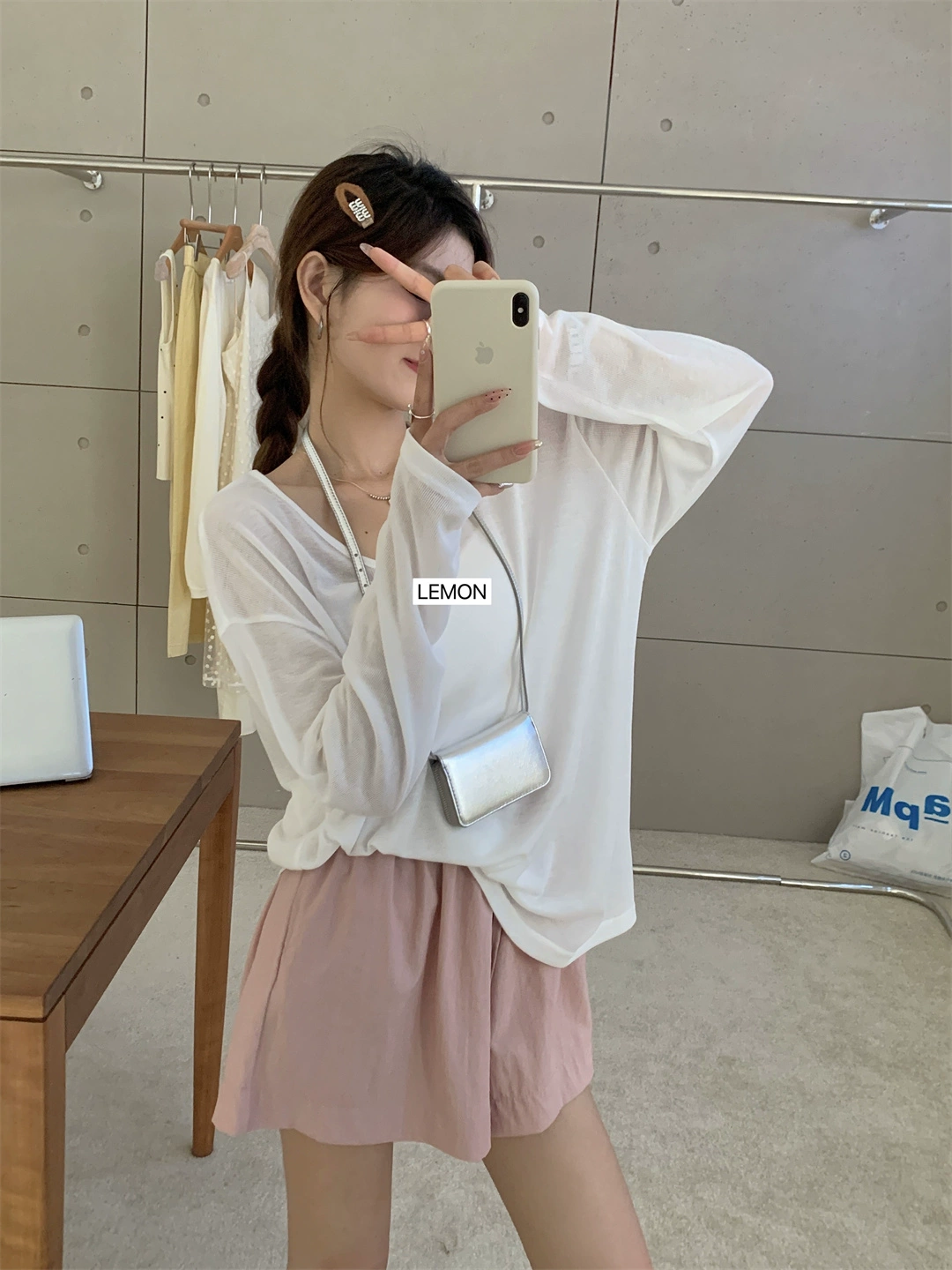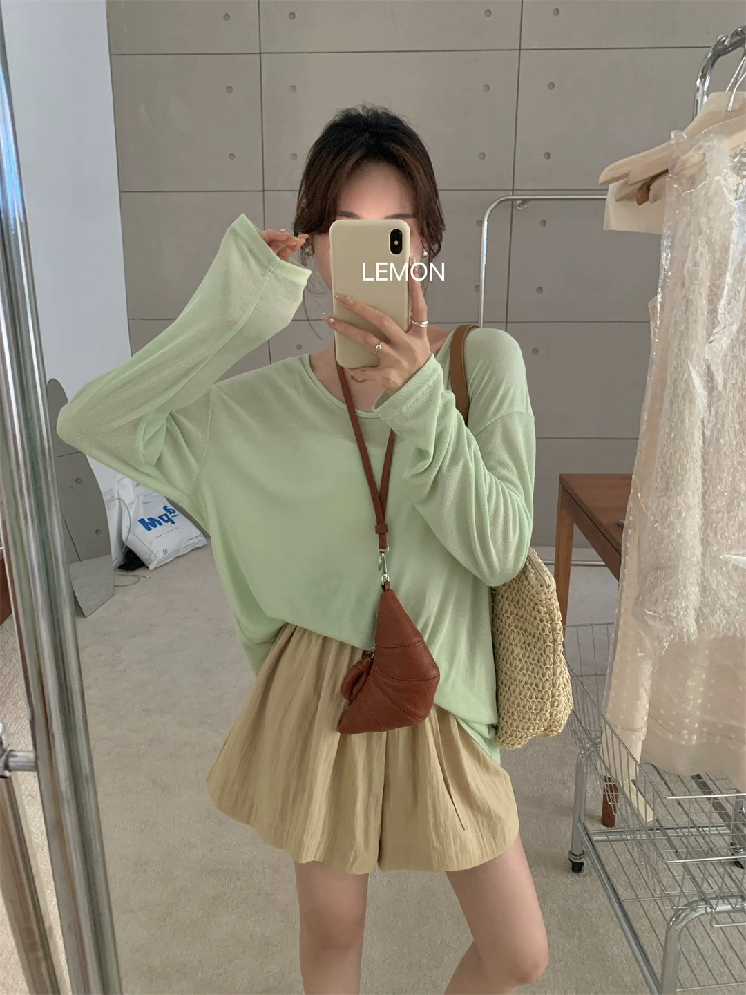 | nameOriginal | Summer thin long-sleeved loose solid color air-conditioning shirt T-shirt |