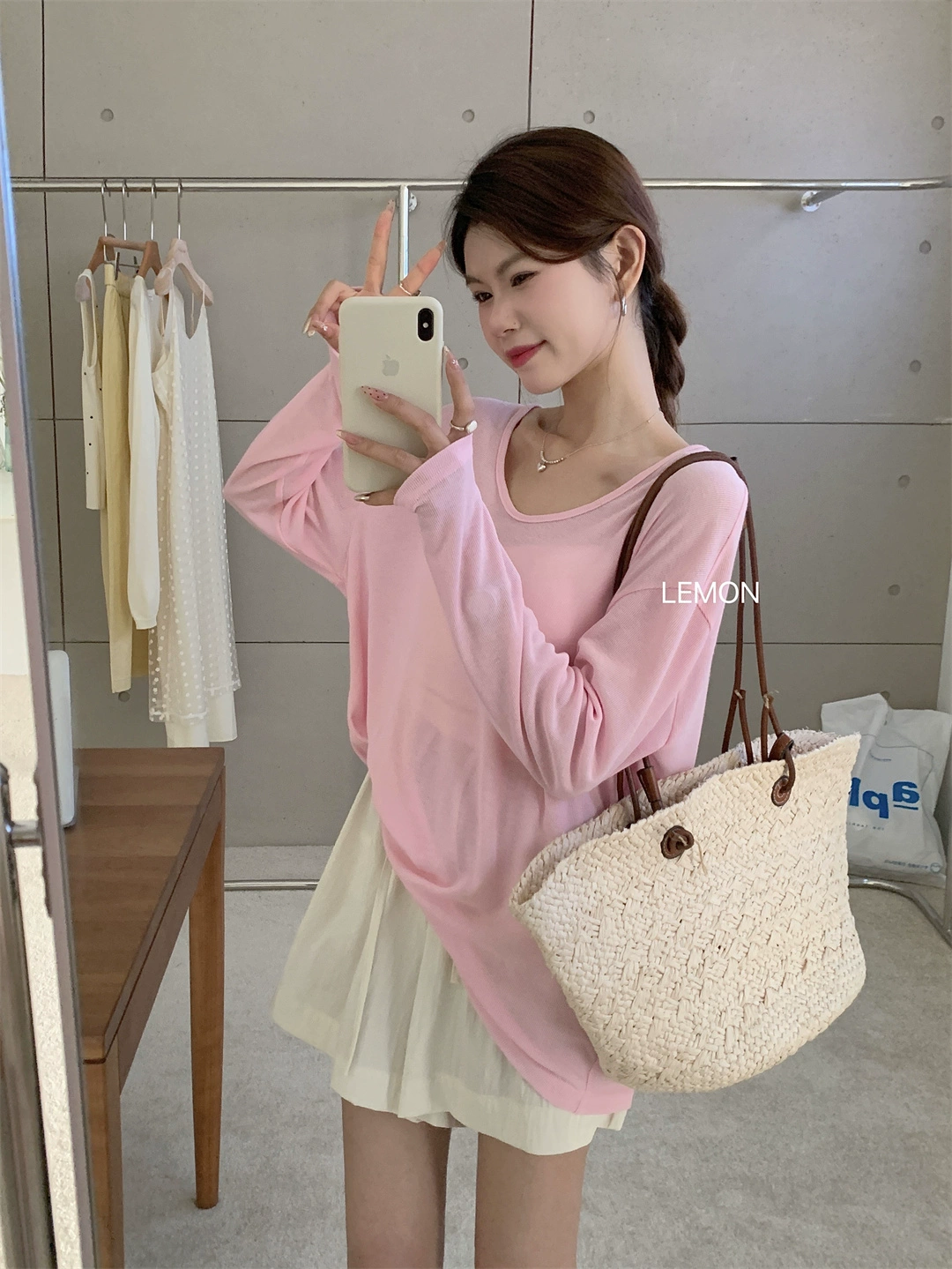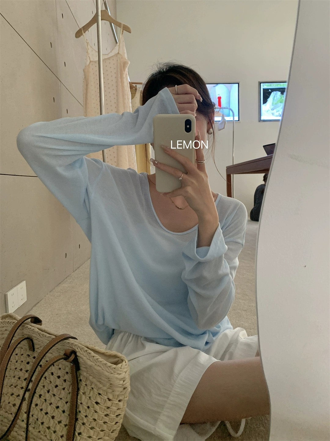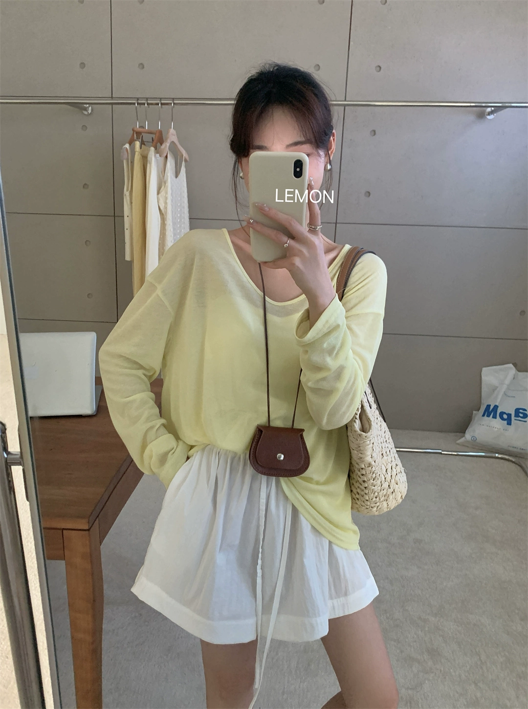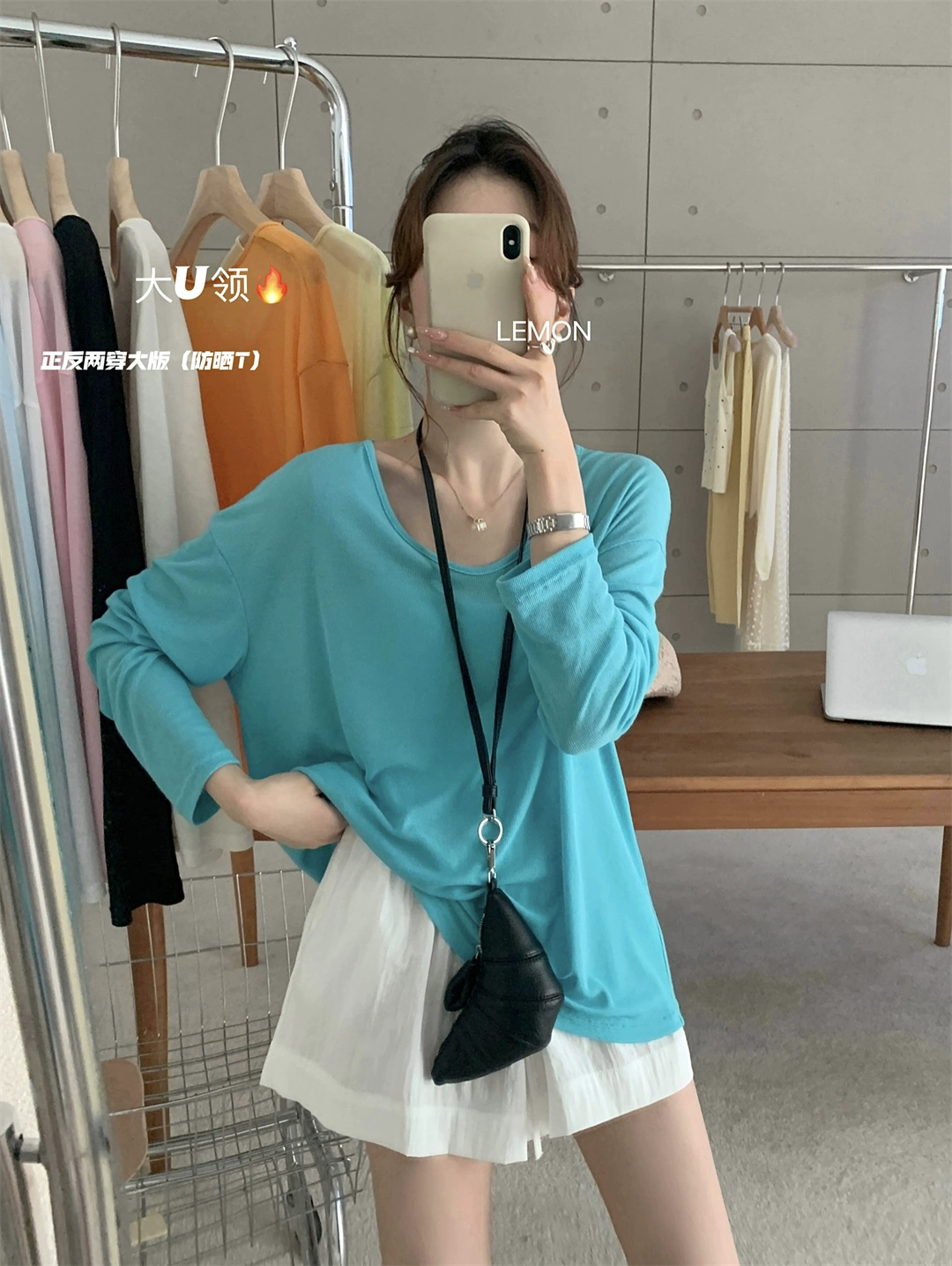 | nameOriginal | Summer thin long-sleeved loose solid color air-conditioning shirt T-shirt |