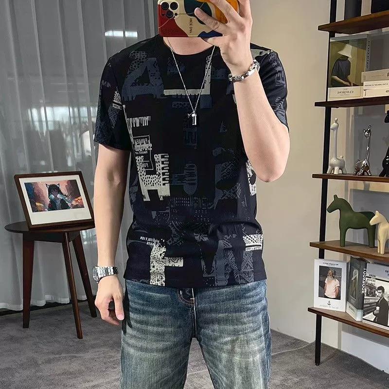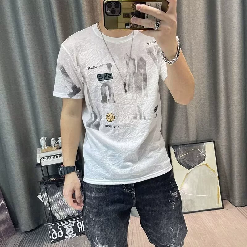 | nameOriginal | Summer thin men's cotton and linen breathable short-sleeved men's t-shirt 2024 summer high-end trendy printed round neck top |
