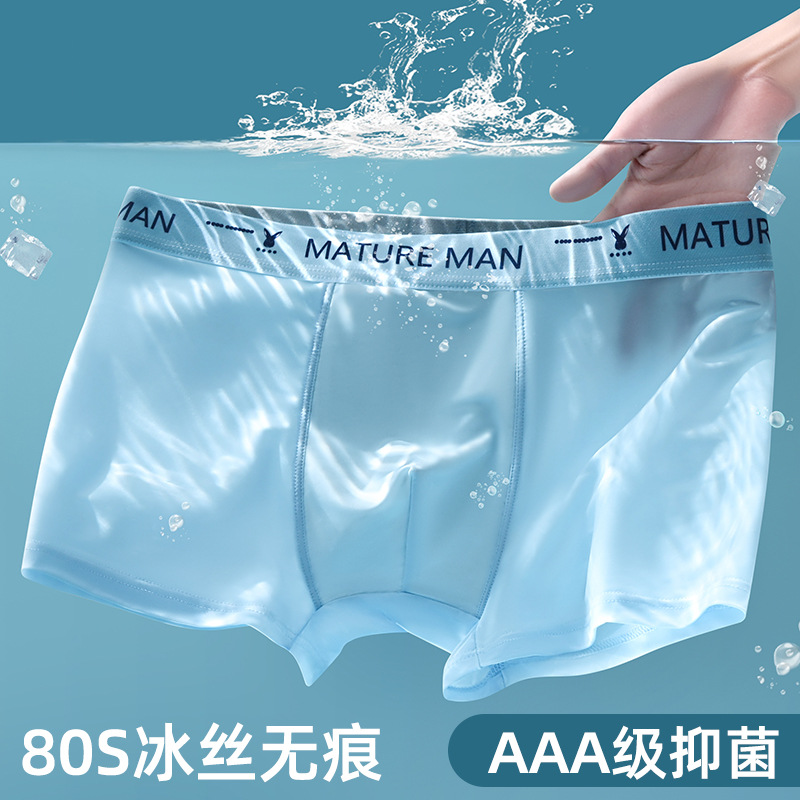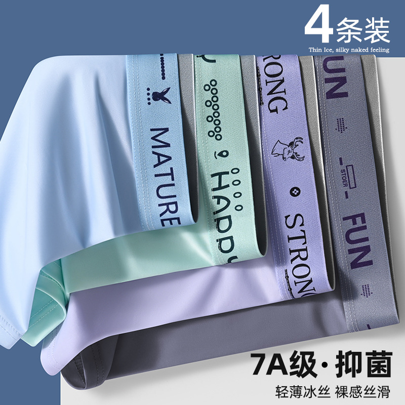 nameOriginal | Summer thin men's underwear solid color boxers Ice Silk boys antibacterial seamless boxer shorts head nude feeling wholesale |