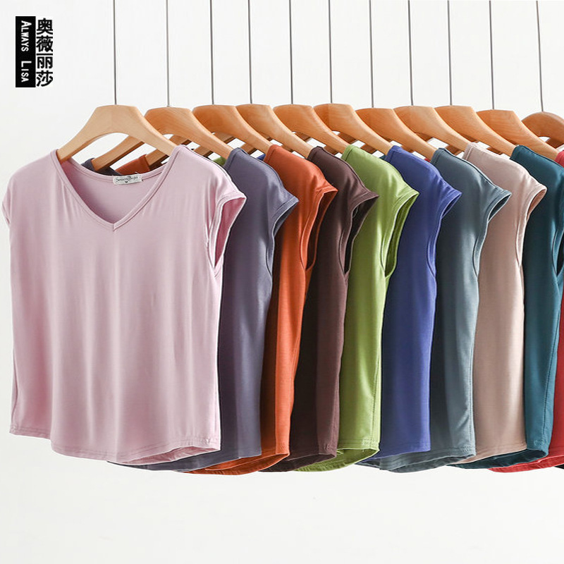| nameOriginal | Summer Thin Modal Sleeveless T-shirt Women's V-neck Short-sleeved Top Loose Large Size Vest Casual Solid Color Base Shirt |