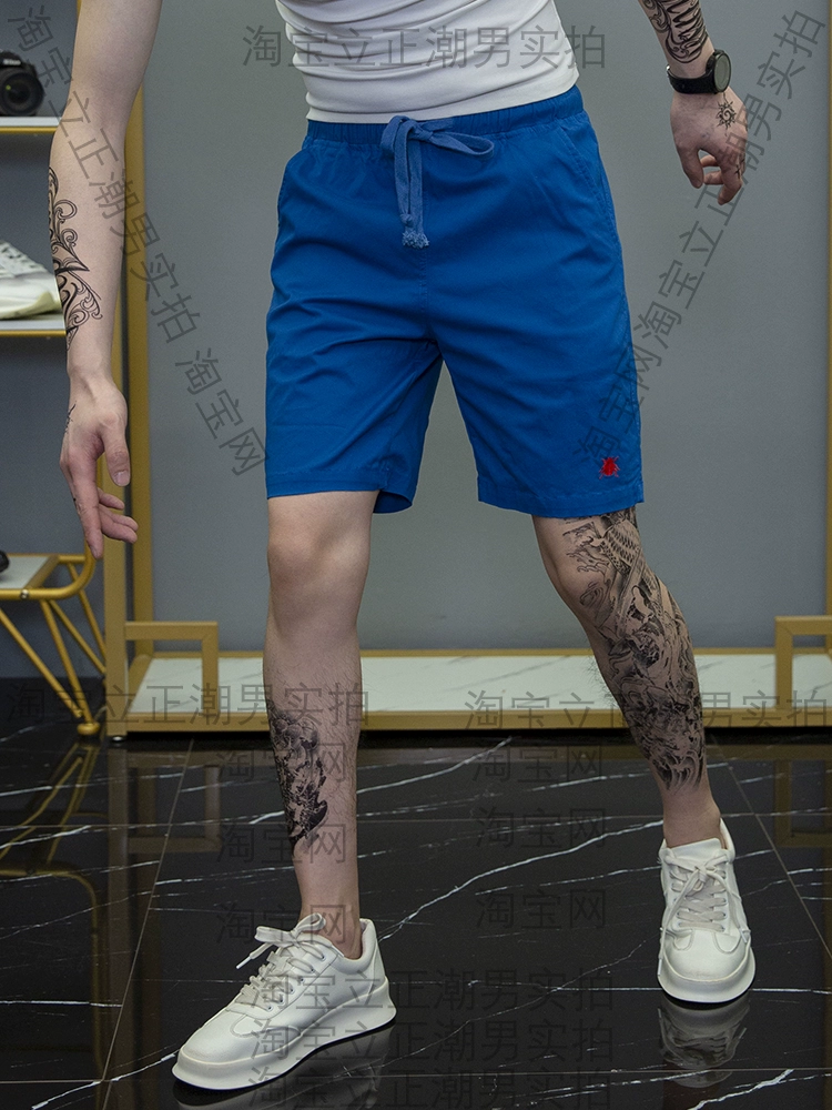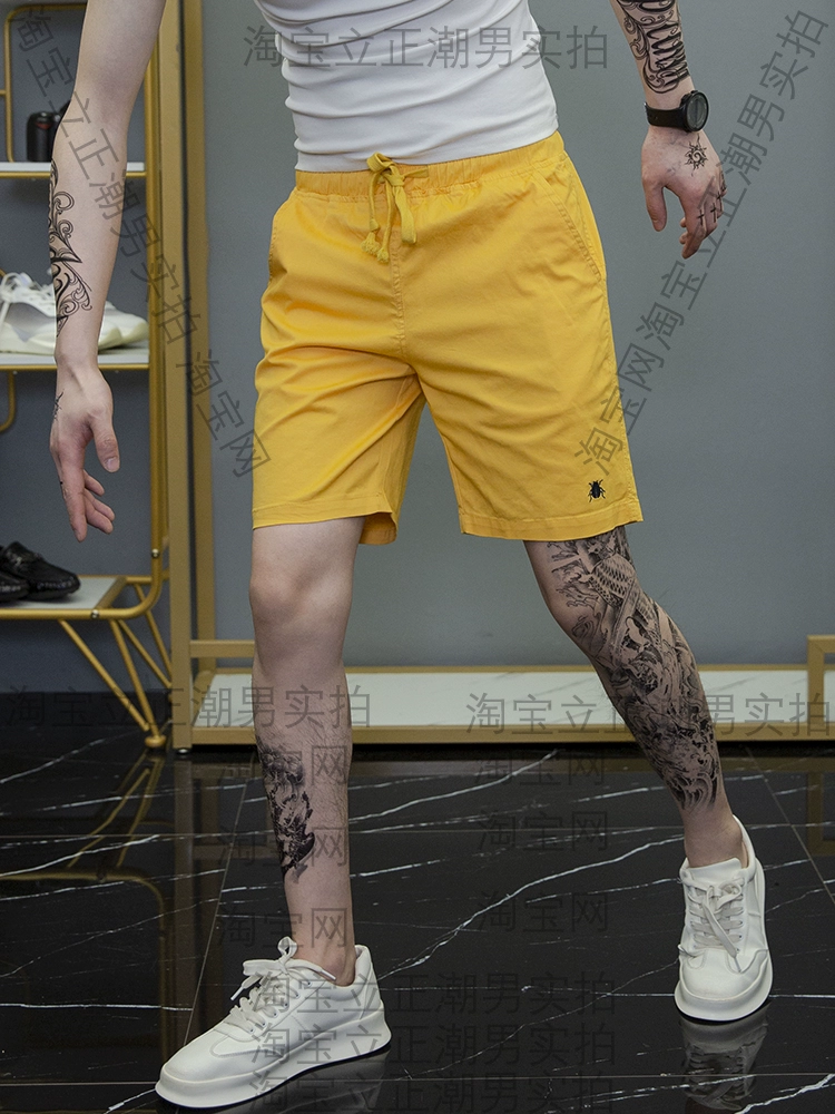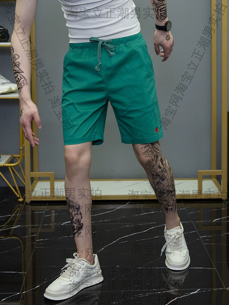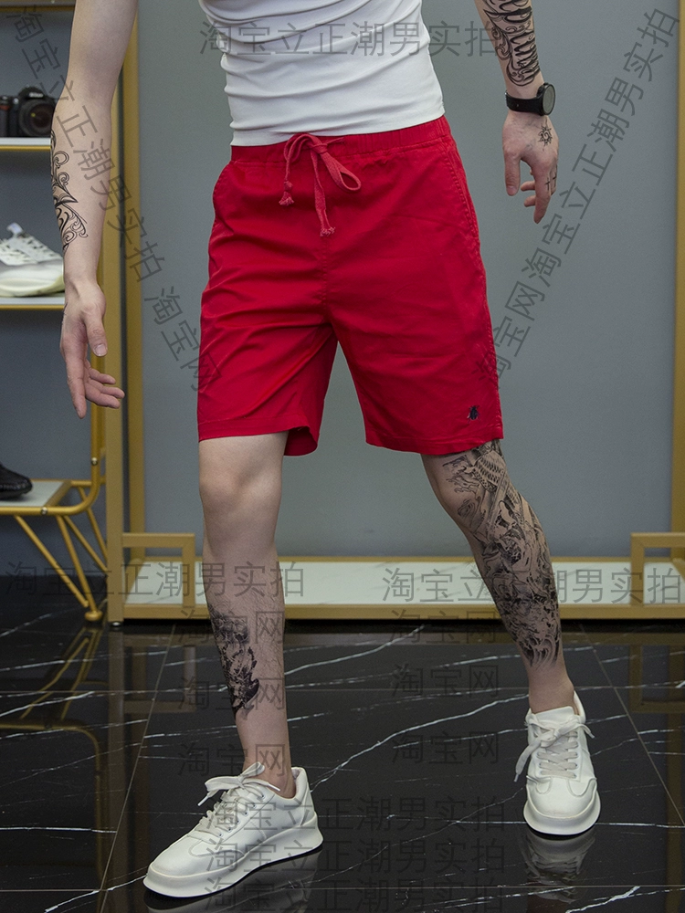 Summer thin pure cotton shorts men's candy-colored five-point pants outer wear slim stretch mid-pants casual versatile beach pants