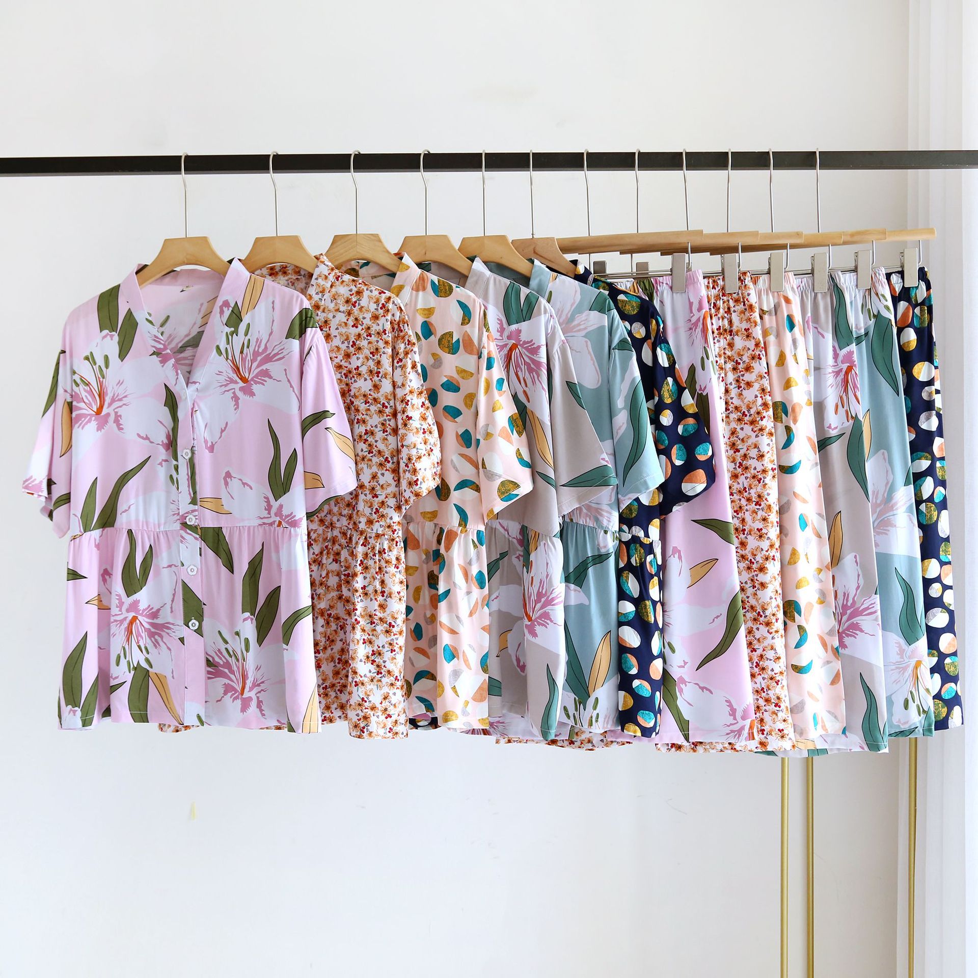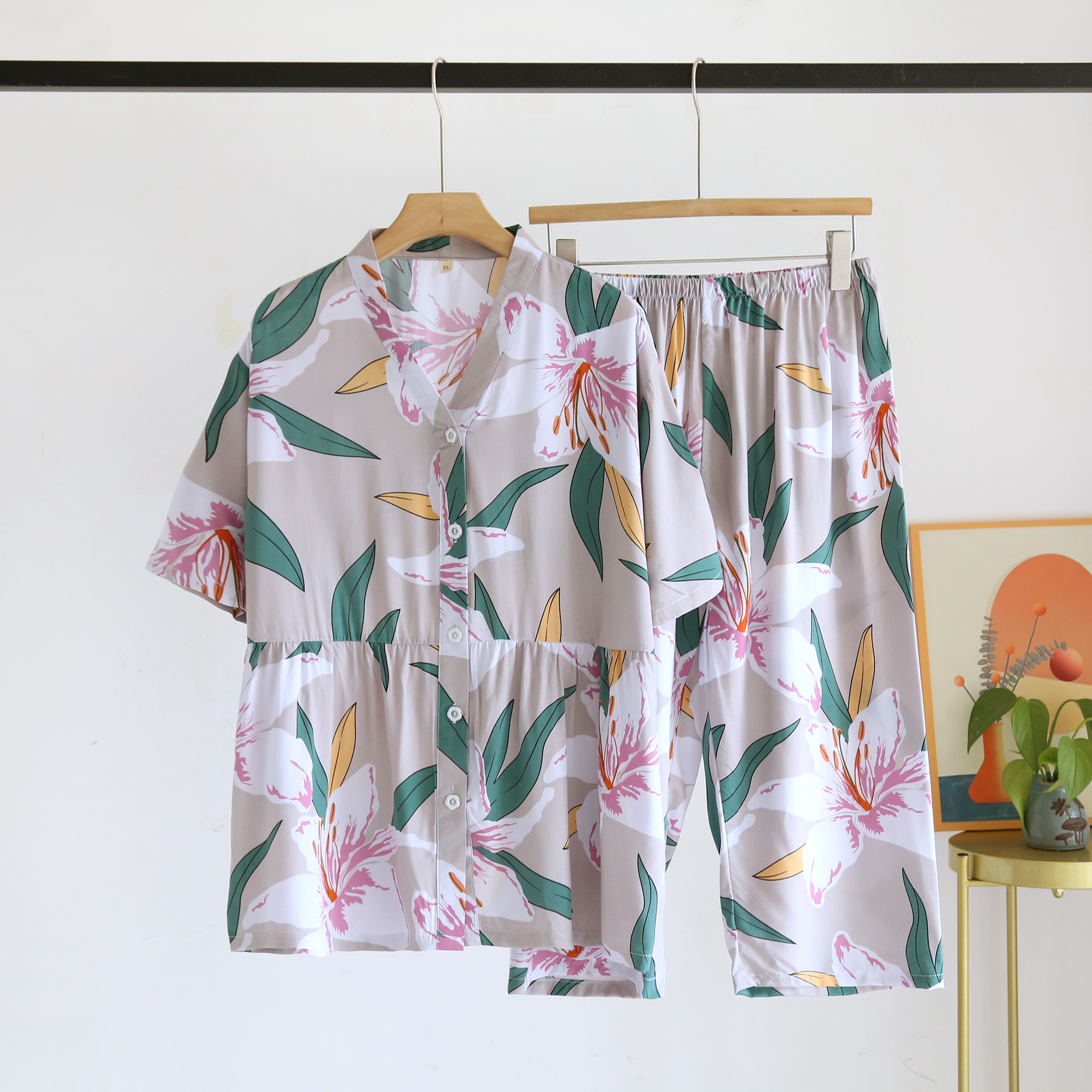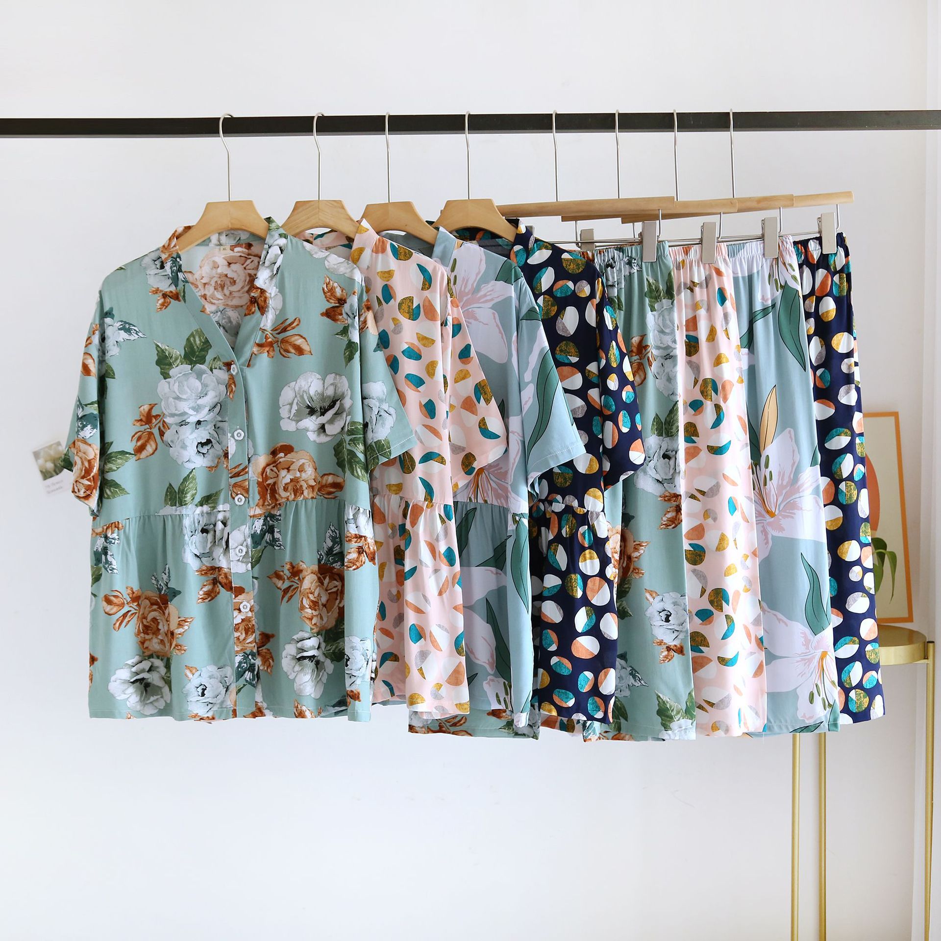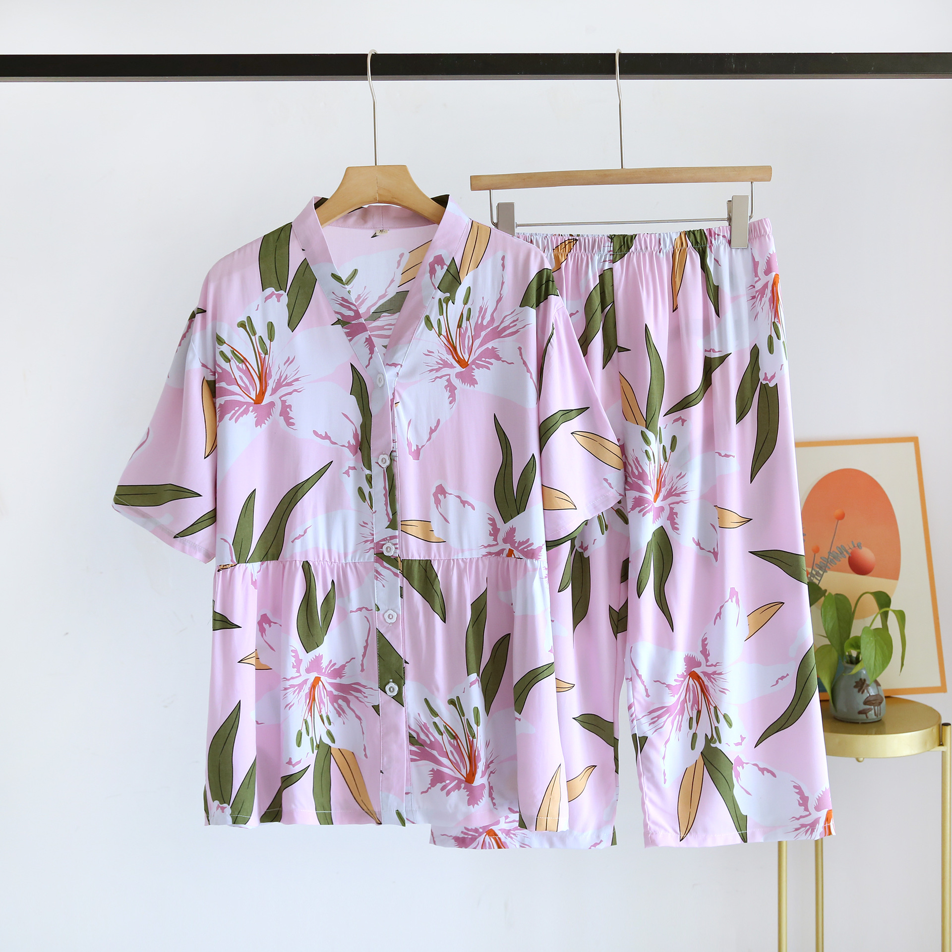 | nameOriginal | Summer Thin Rayon Short-sleeved Cropped Suit Women's Large Size Printed Cotton Loose Pajamas Casual Home Clothes |