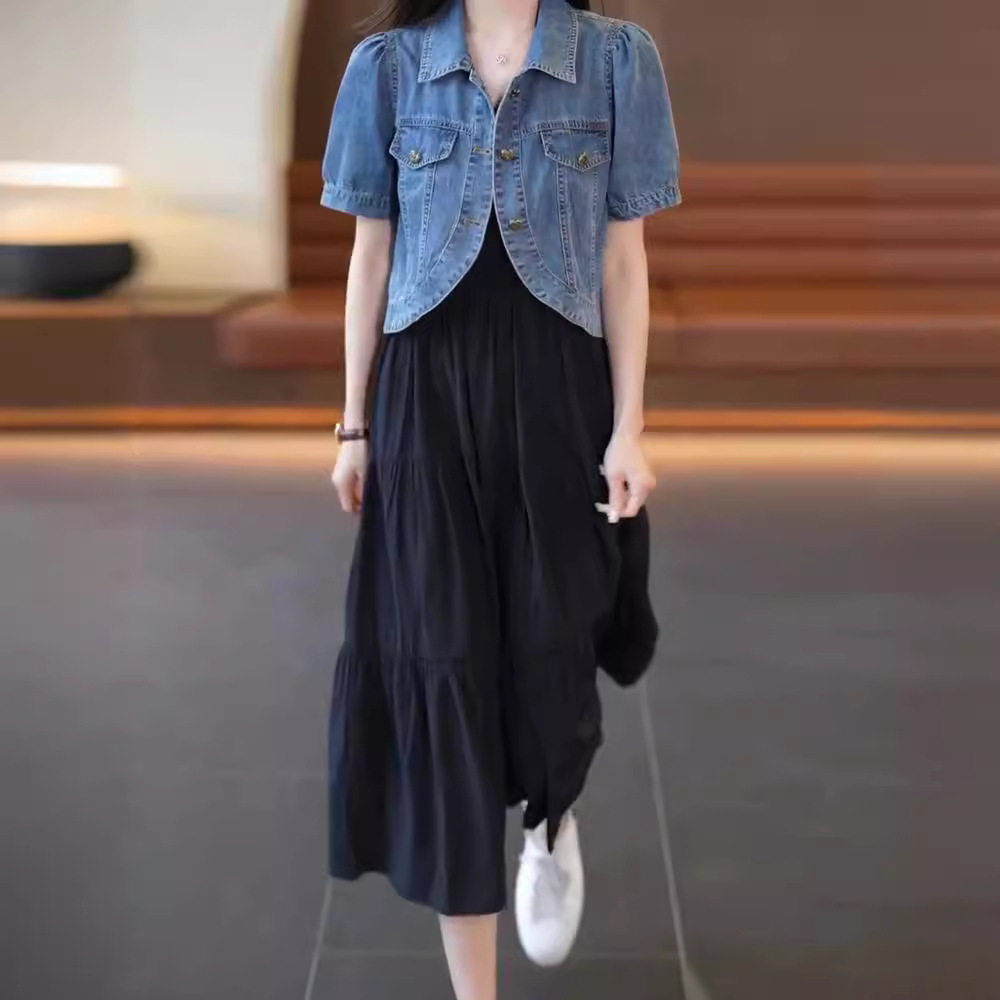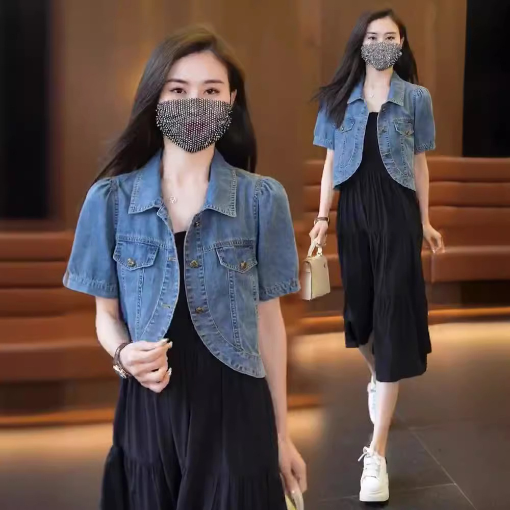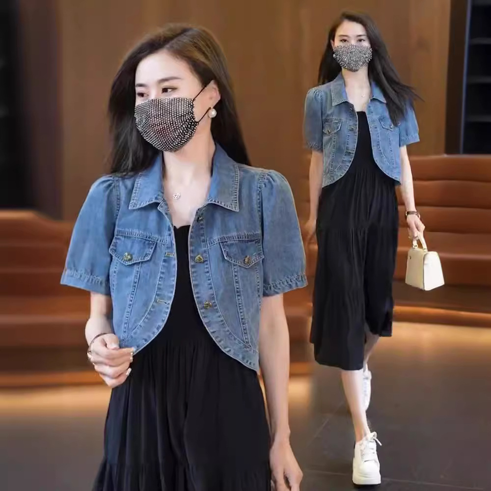 Summer Thin Short-sleeved Denim Coat Women's Small 2024 New Slip Skirt Shawl Outer Short Top