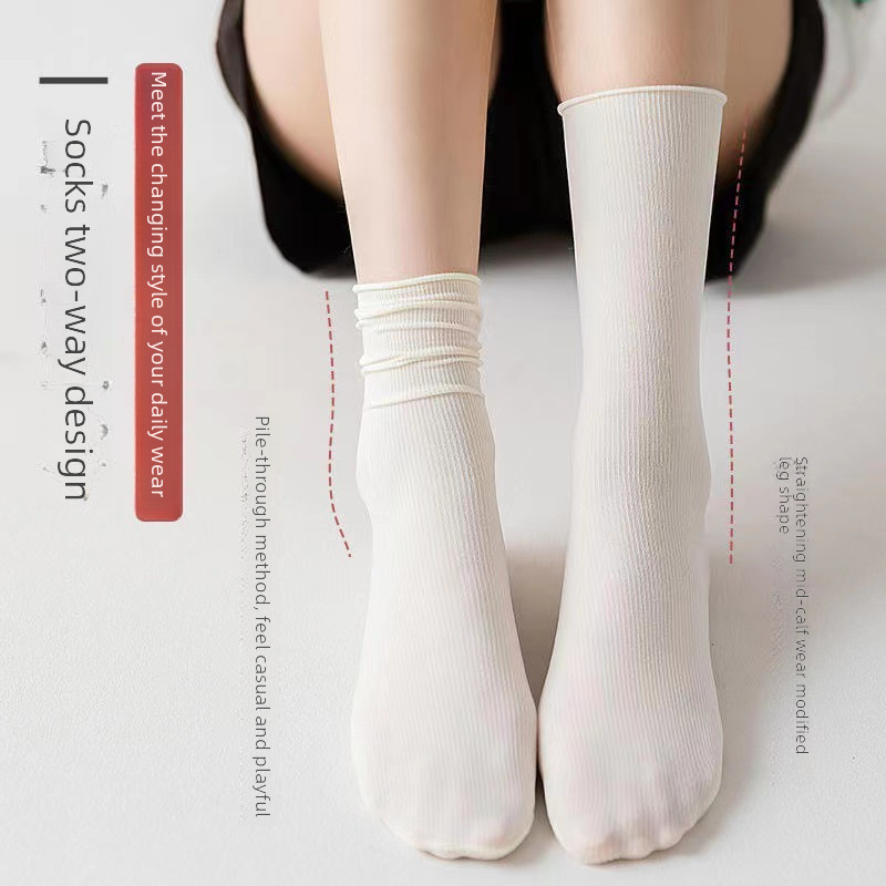 | nameOriginal | Summer Thin Socks Women's Solid Color Mid-length Socks ins Trendy Spring and Summer White Stockings Ice Stockings Cyber Celebrity Piled Stockings |