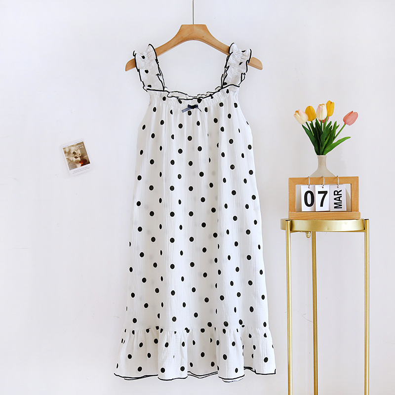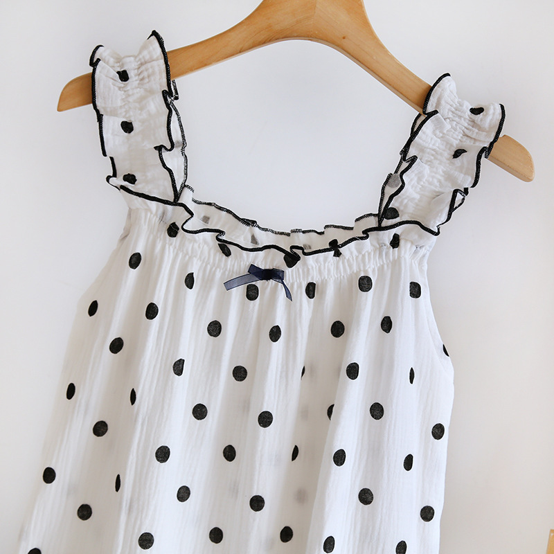 | nameOriginal | Summer thin suspender skirt double cotton yarn women's pajamas wave point casual breathable home pajamas factory direct supply |