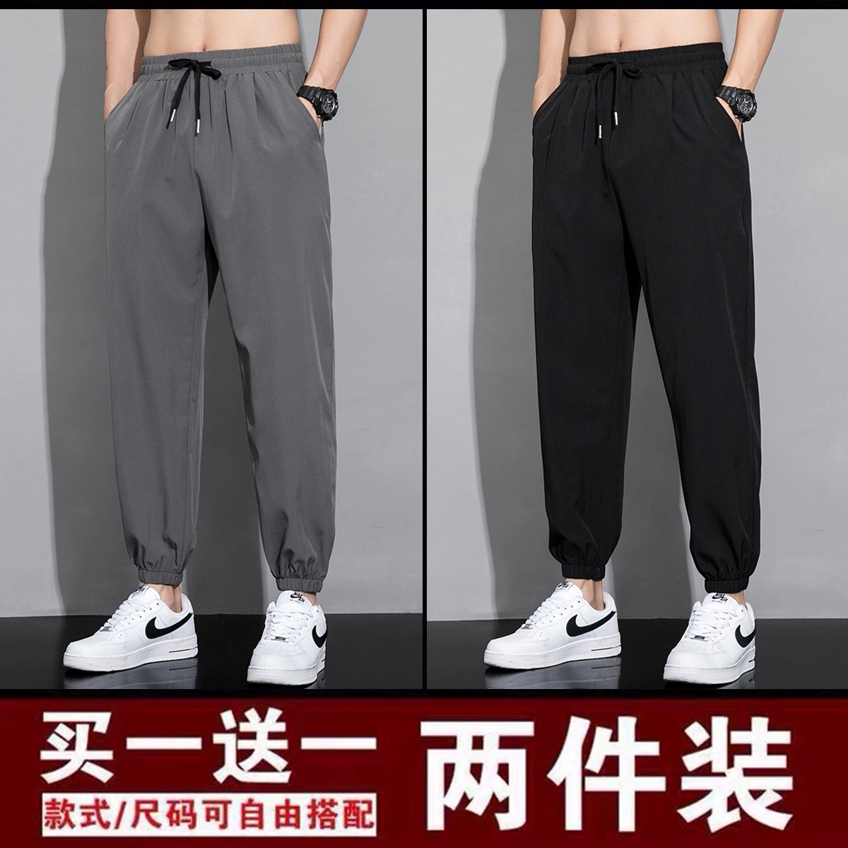 | nameOriginal | Summer thin trousers men's trendy ice silk loose and versatile spring and autumn style nine-point sweatpants trendy brand ankle-length casual trousers |