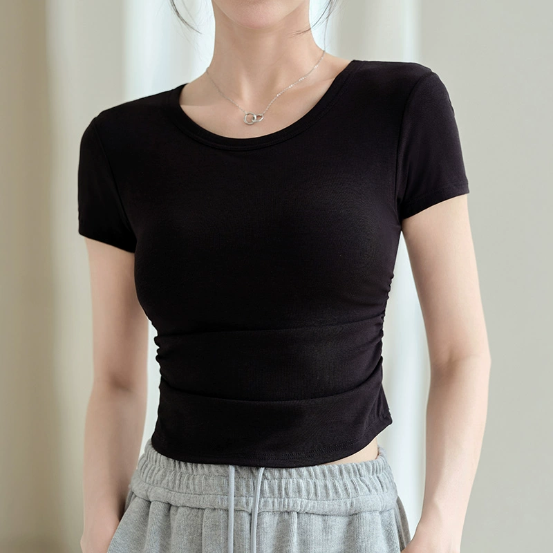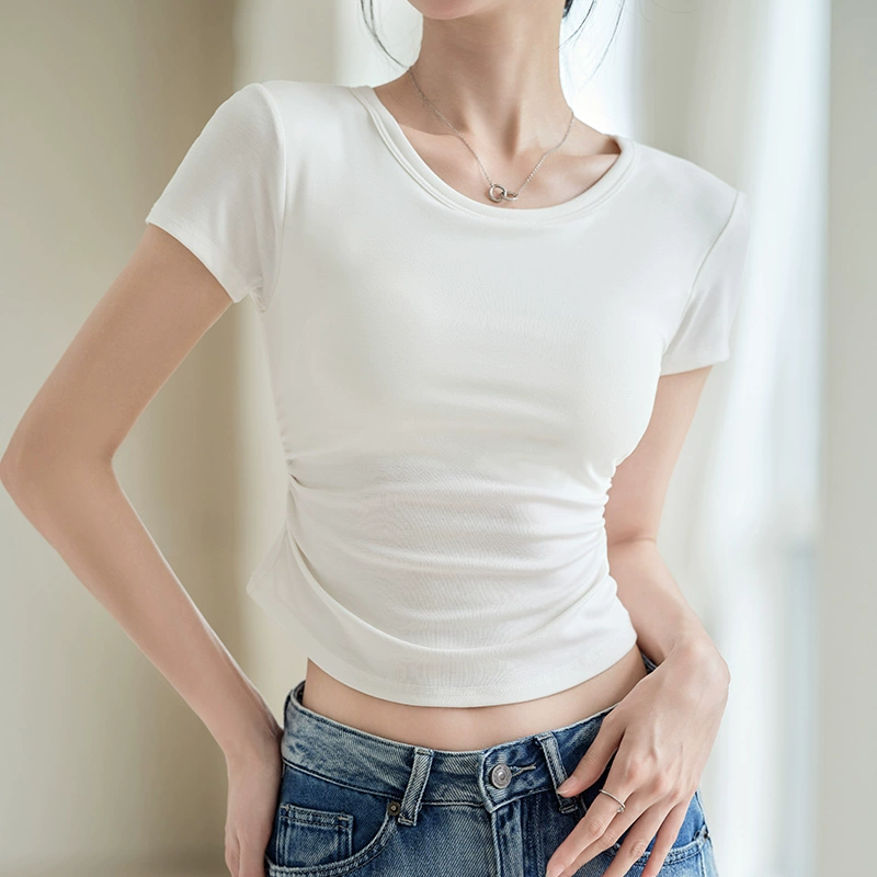 Summer Thin Waist Right Shoulder Short Sleeve Slim T-Shirt