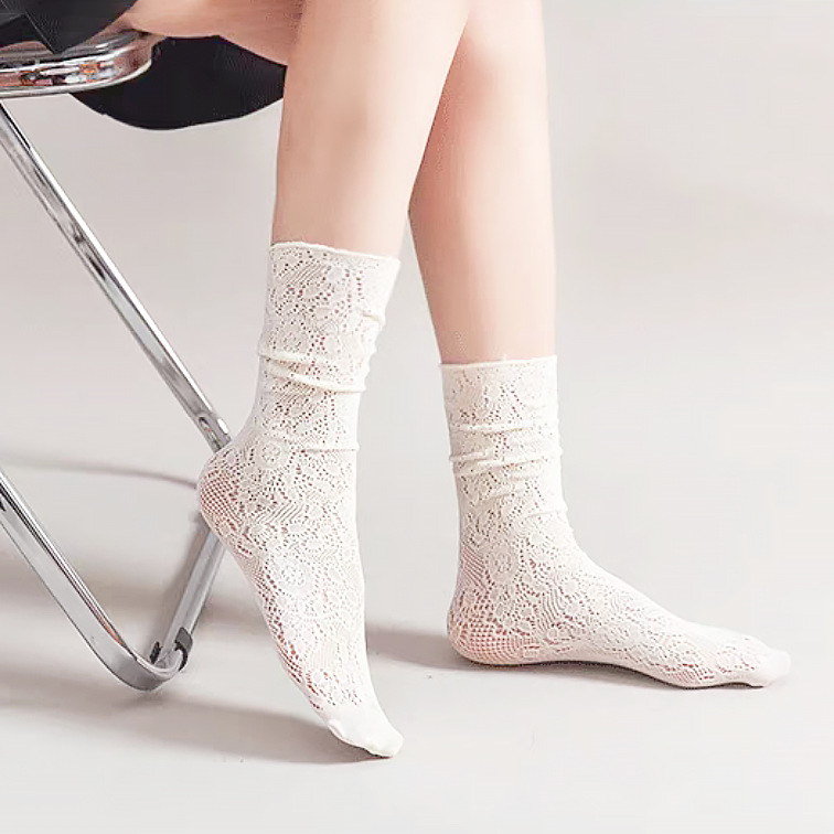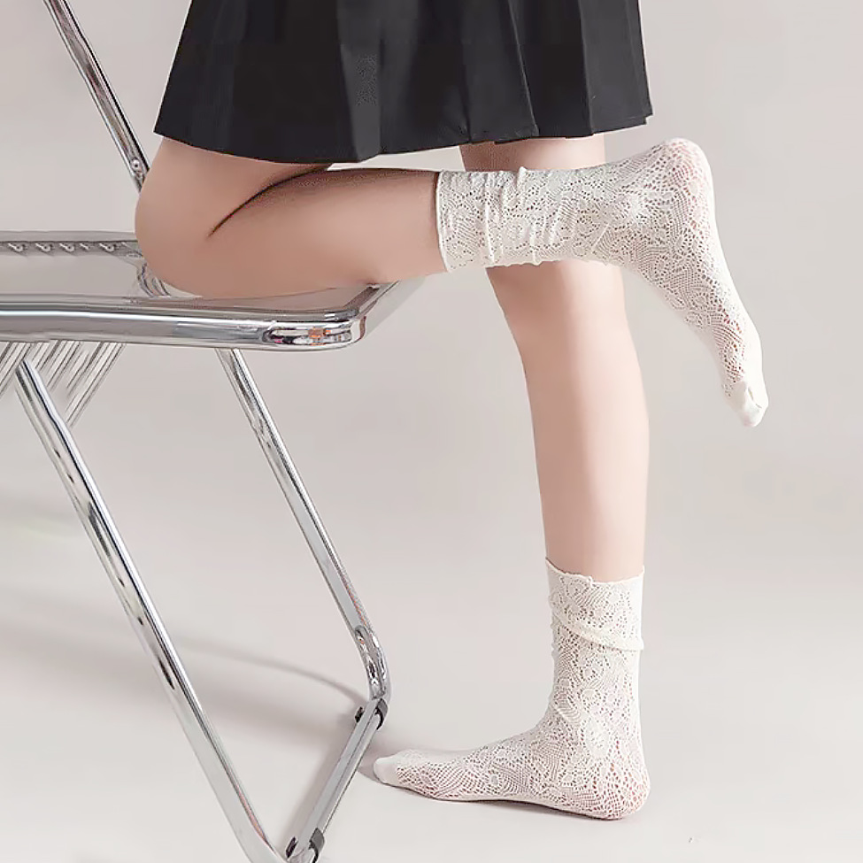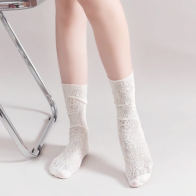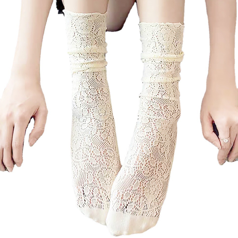 | nameOriginal | Summer Thin White Lace Calf Piled Net Socks for Children jk Mesh Stretch Hollow-out Ear Edge Middle Socks |
