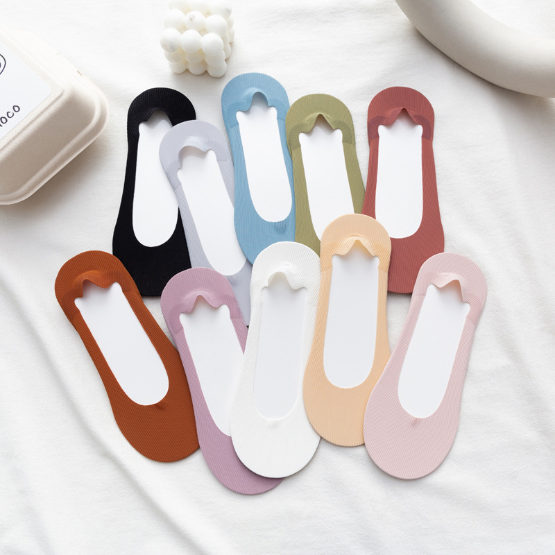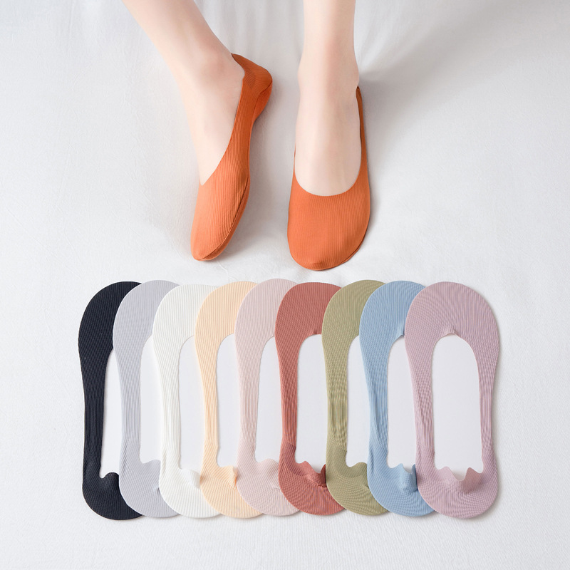 Summer Thin Women's Invisible Socks Silicone Don't Fall Women's Boat Socks Spring and Summer Thin Solid Color Cotton Bottom Shallow Socks