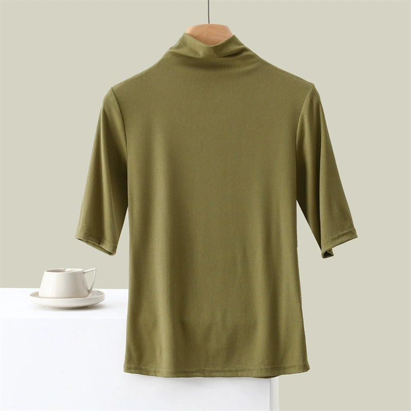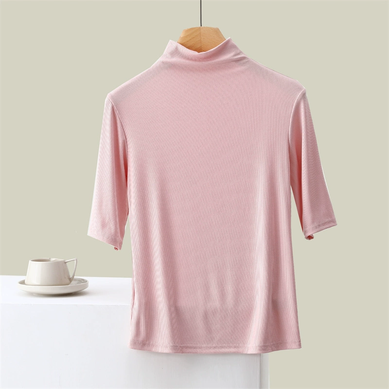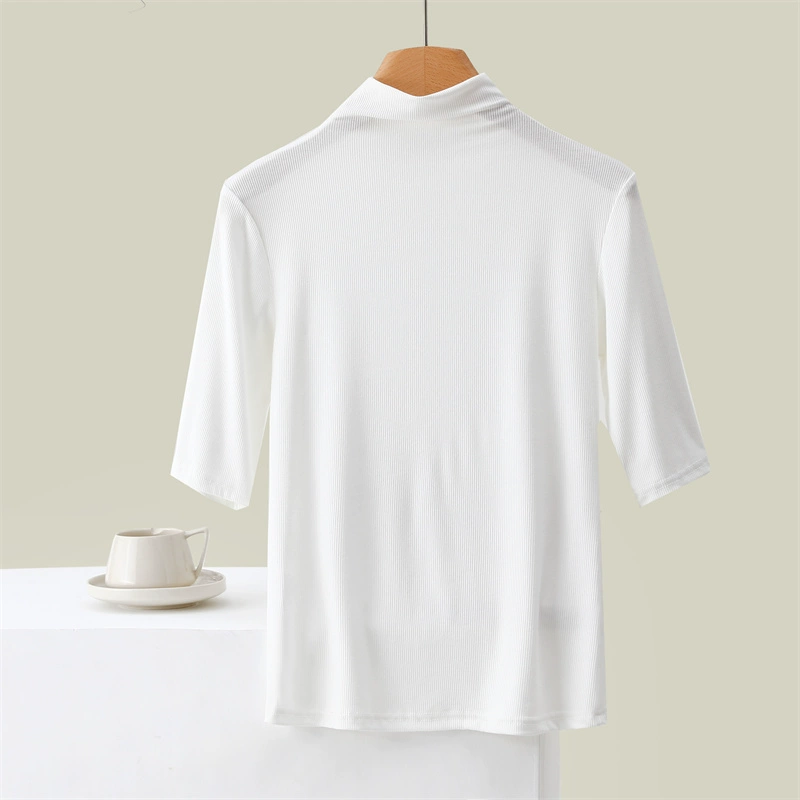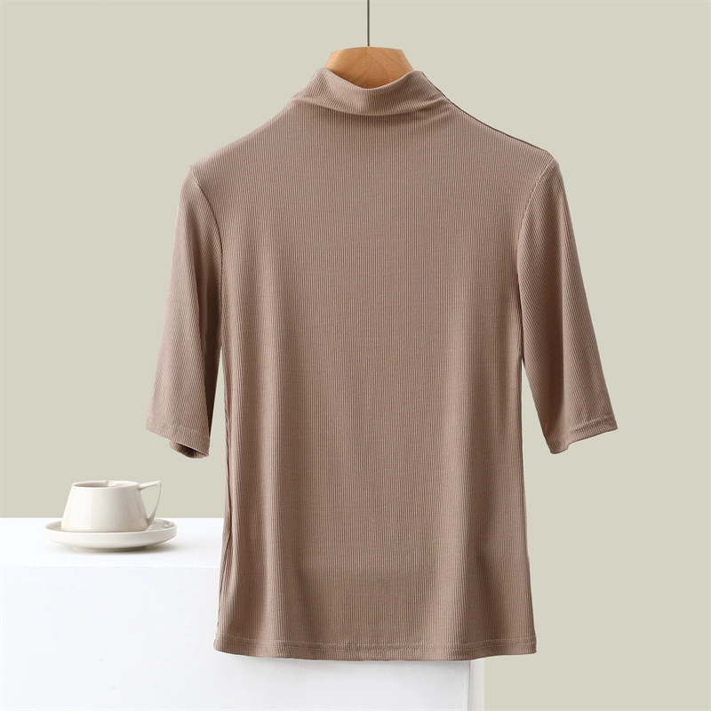 | nameOriginal | Summer threaded modal high collar five-quarter sleeve T-shirt for women to wear thin short-sleeved tops with a slim inner layering shirt |