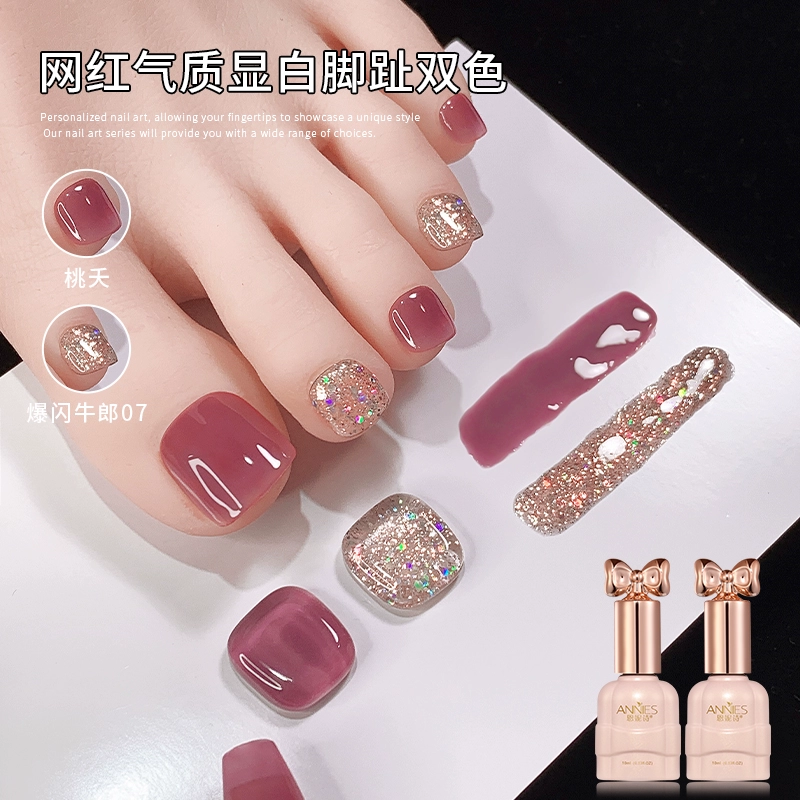 | nameOriginal | Summer toe nail polish dragon fruit two-color sequins |