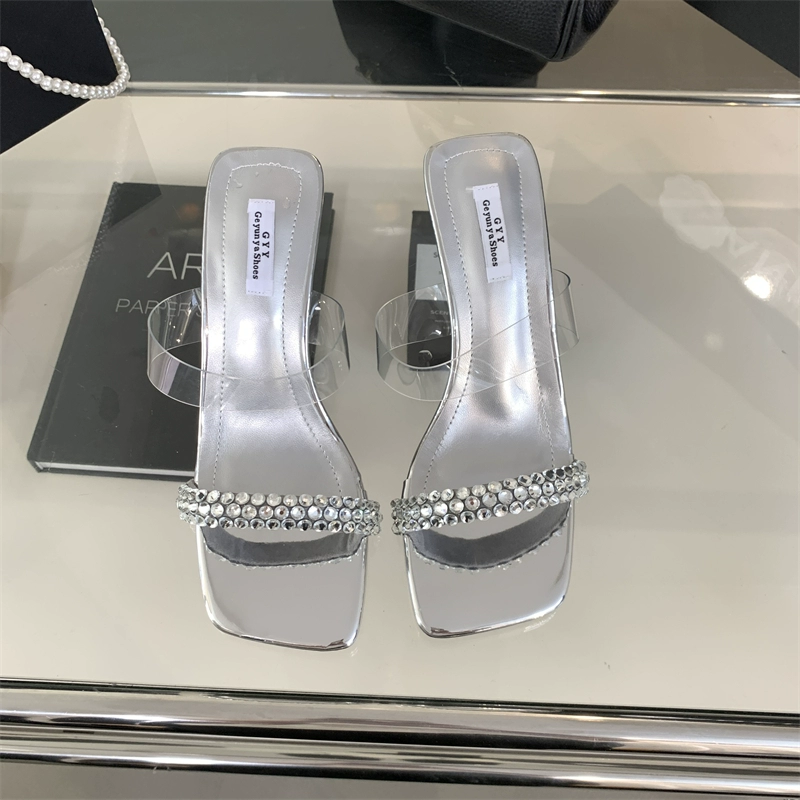 Summer transparent one-word style with elegant stiletto heels and fashionable rhinestones