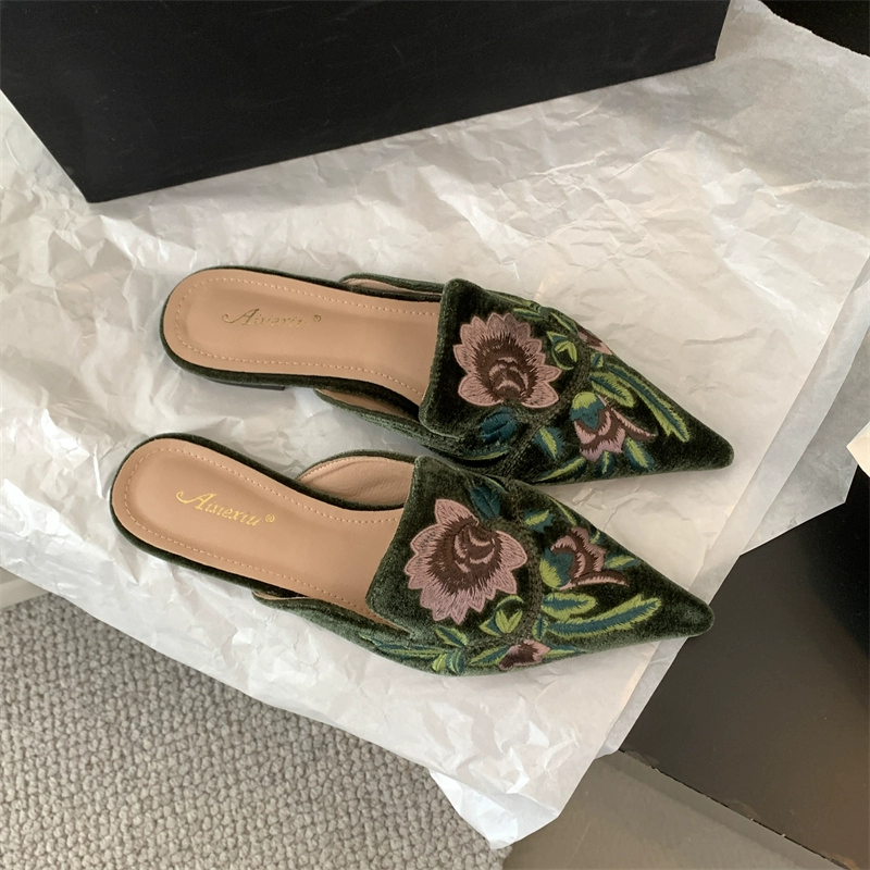 | nameOriginal | Summer trendy embroidered outer wear pointed toe flat sandals |