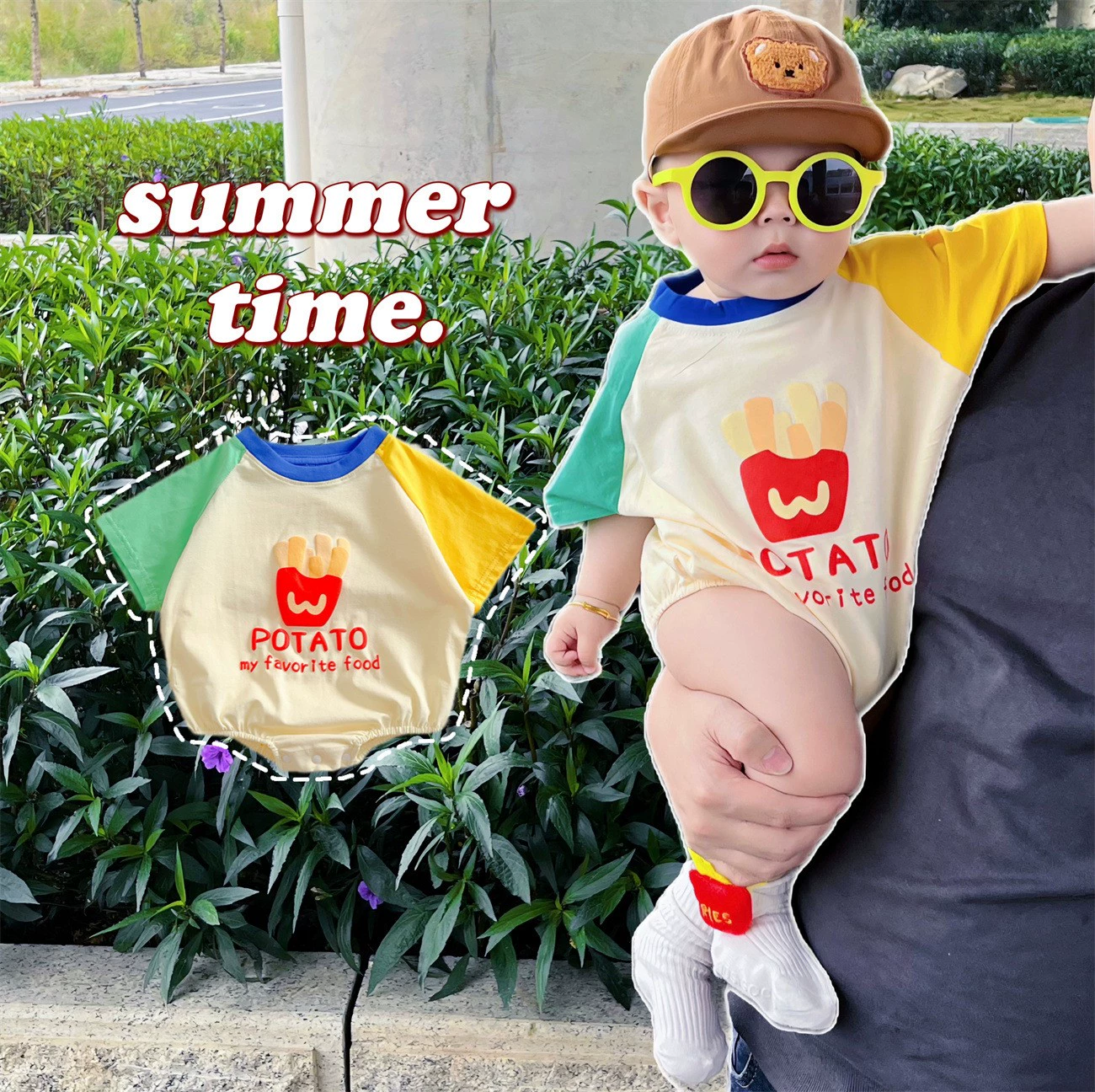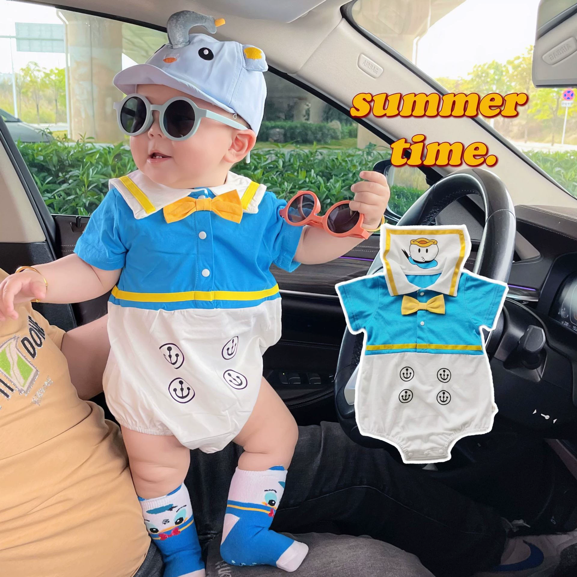 | nameOriginal | Summer trendy Garfield one-year-old cartoon style rompers |