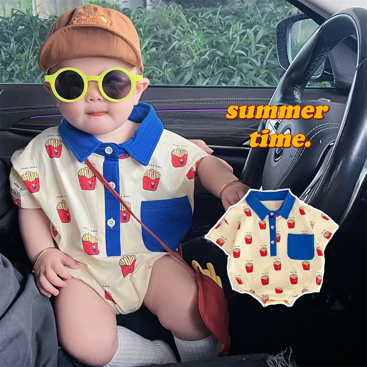 | nameOriginal | Summer trendy Garfield one-year-old cartoon style rompers |