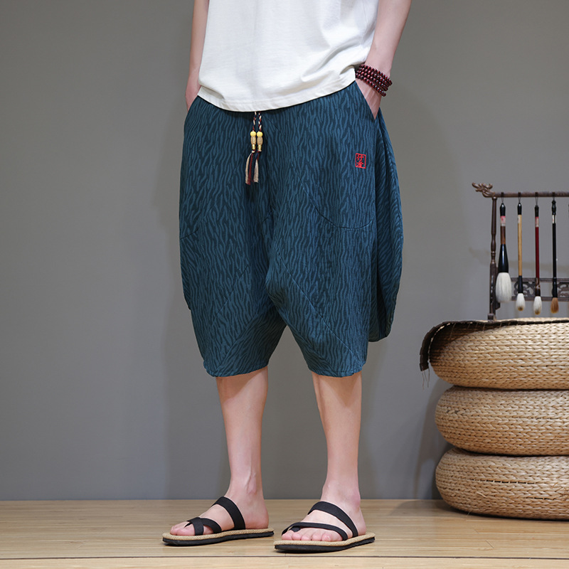 | nameOriginal | Summer Trendy Men's C Thin Loose Capri Pants Chinese Style Large Size Flower Pants Casual Wide Leg Haren Pants A19 |