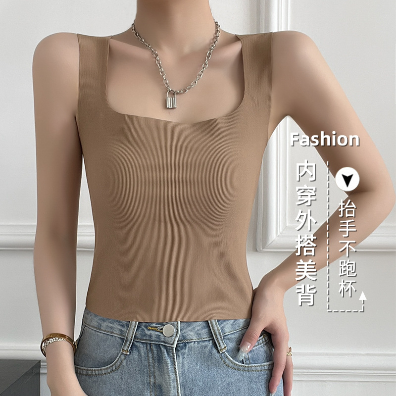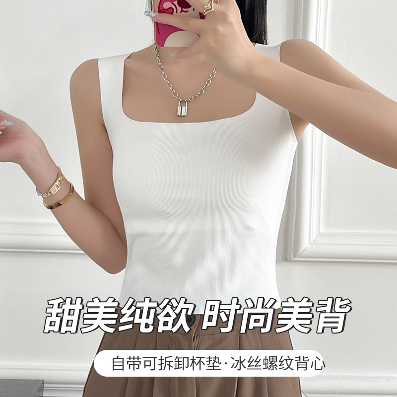 | nameOriginal | Summer U-neck beauty back camisole women's solid color inner sexy ice silk sleeveless bottoming top with chest pad underwear |