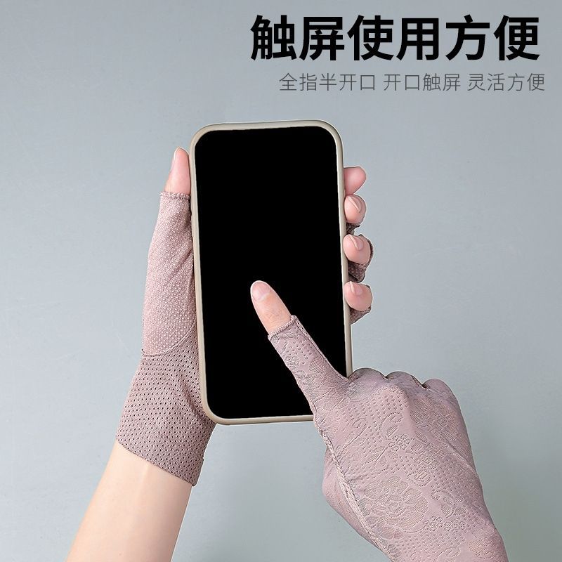 | nameOriginal | Summer Ultra-thin Ice Silk Dew Finger Half-finger Cycling UV-proof Driving Non-slip Sun-proof Gloves for Women Spring and Autumn Finger Leakage |