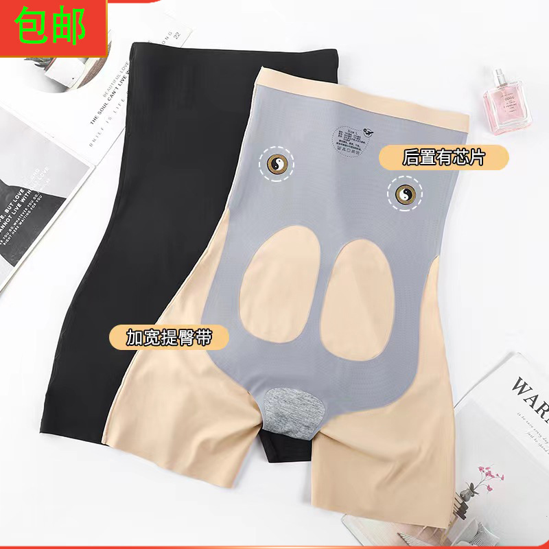Summer ultra-thin ice silk seamless abdomen hip pants chubby girl plus size 200kg postpartum abdomen thin leg safety pants