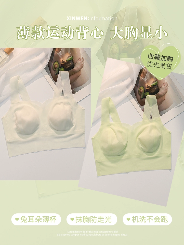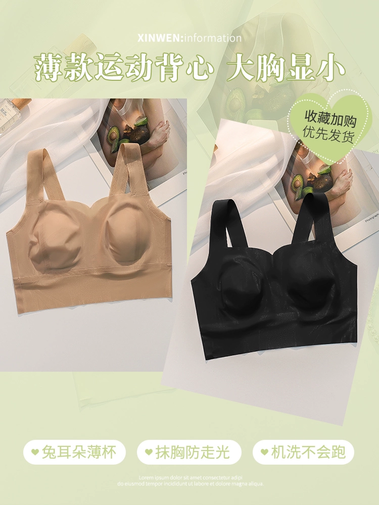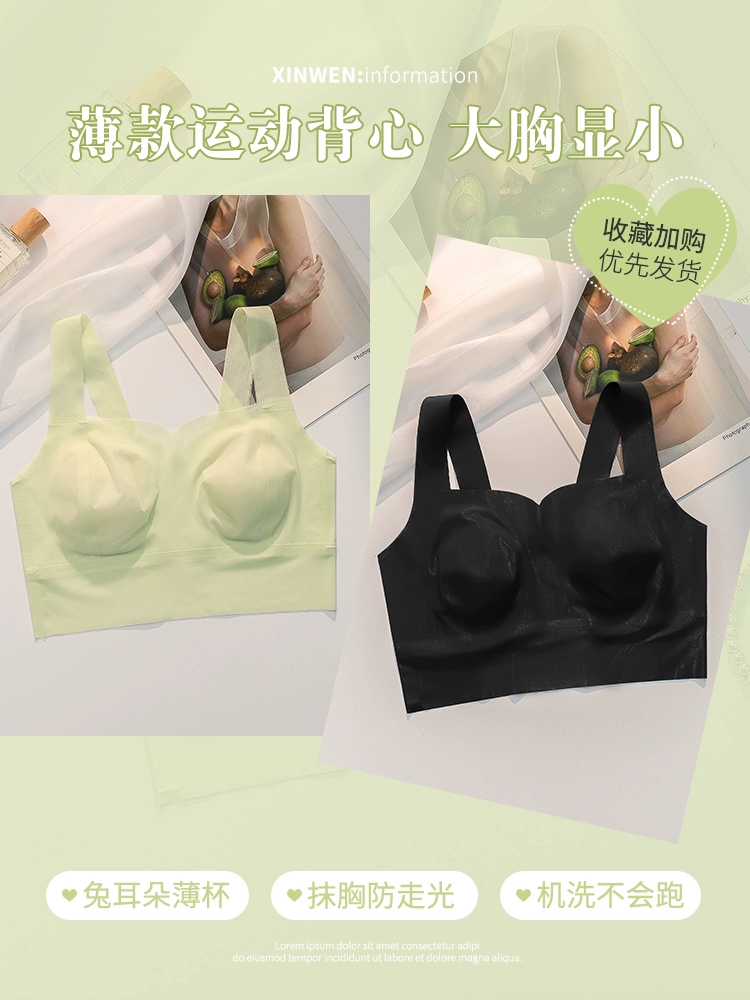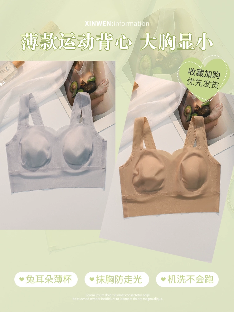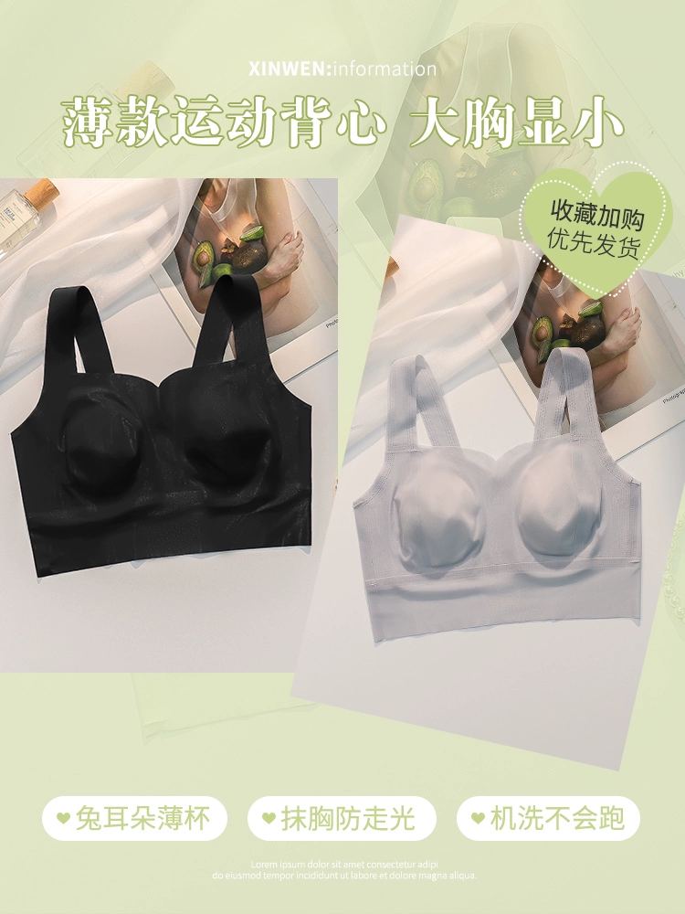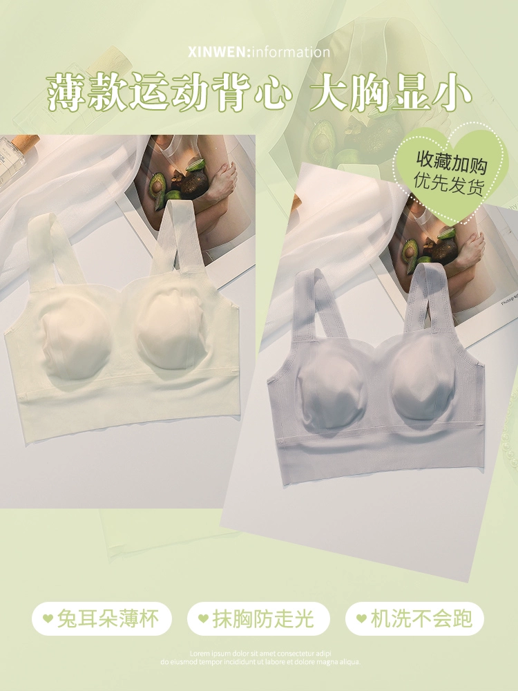 | nameOriginal | Summer ultra-thin underwear women's sports vest style seamless ice silk big breasts showing small breasts bunny ears beautiful back bra |