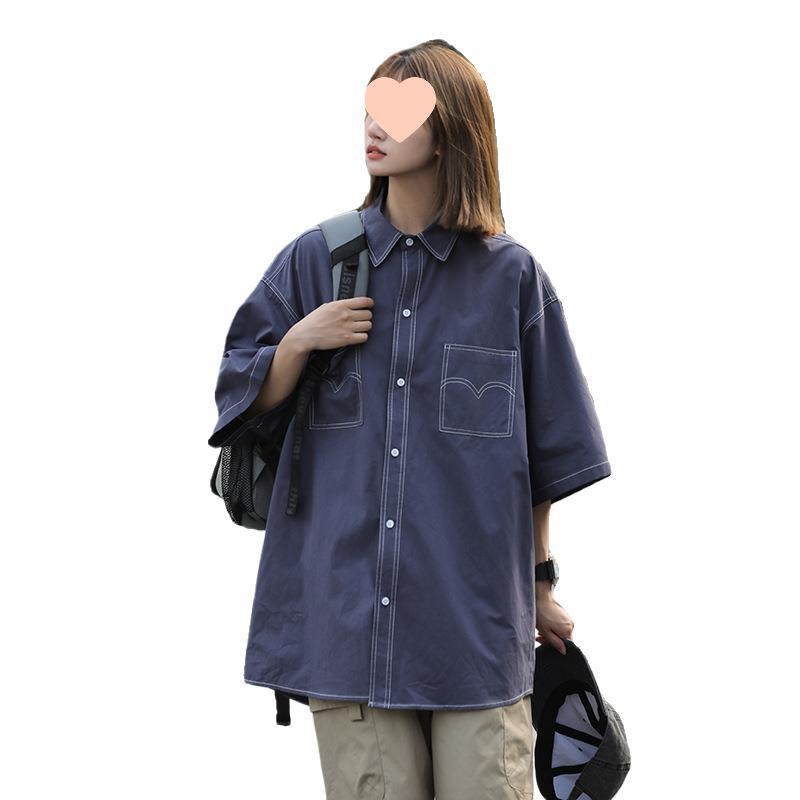 | nameOriginal | Summer Unisex Shirt Women's Short-sleeved Japanese Tooling Top Niche Design Hong Kong Style Loose Shirt B7003P45 |