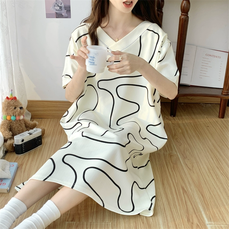 | nameOriginal | Summer V-neck extra large size 300 pounds princess style pajamas |
