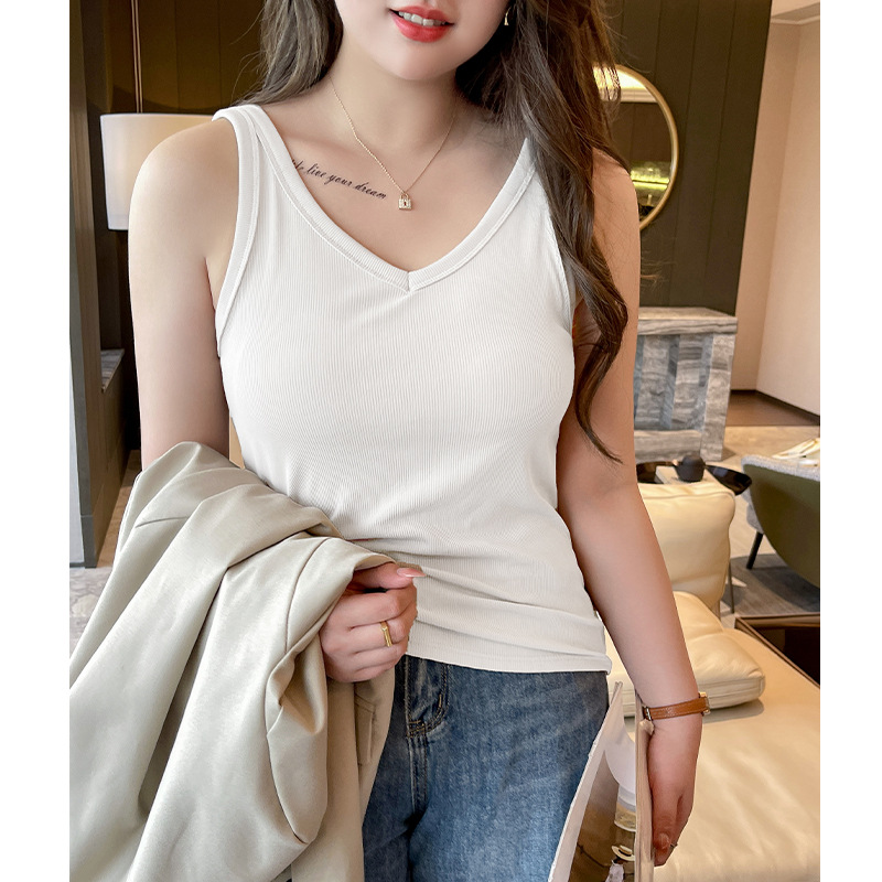 | nameOriginal | Summer V-neck threaded plus size strap women's inner slim vest hot girl solid color sleeveless sexy knitted top |