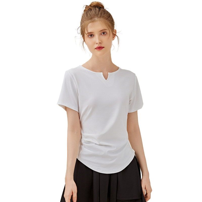 | nameOriginal | Summer v Neck Yoga Wear for Women, Small v Neck, Nude Tight Running Fitness T-shirt, Quick-drying Pure Color Waist Fitness Top |