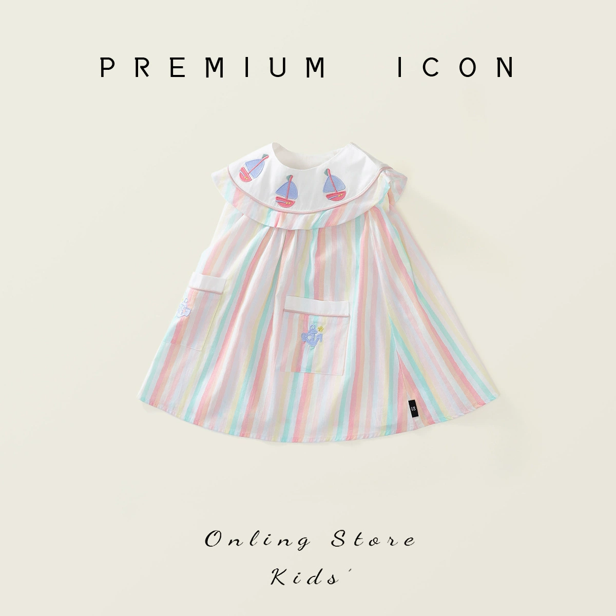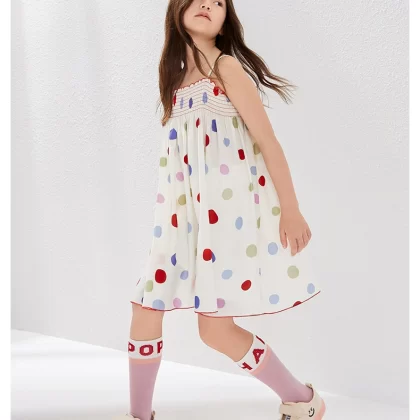 | nameOriginal | Summer vacation girls' striped polka dot sundress with suspenders |