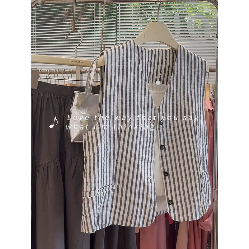 | nameOriginal | Summer vertical striped vest shirt casual jacket linen |