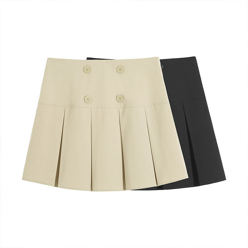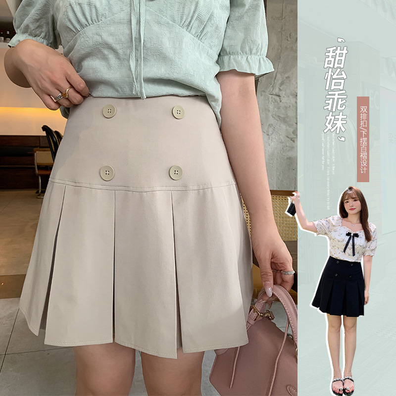 | nameOriginal | Summer Vintage khaki Pleated Skirt Women's Summer Chubby Girl plus size Zipper High Waist A- line Skirt Short 62588 |