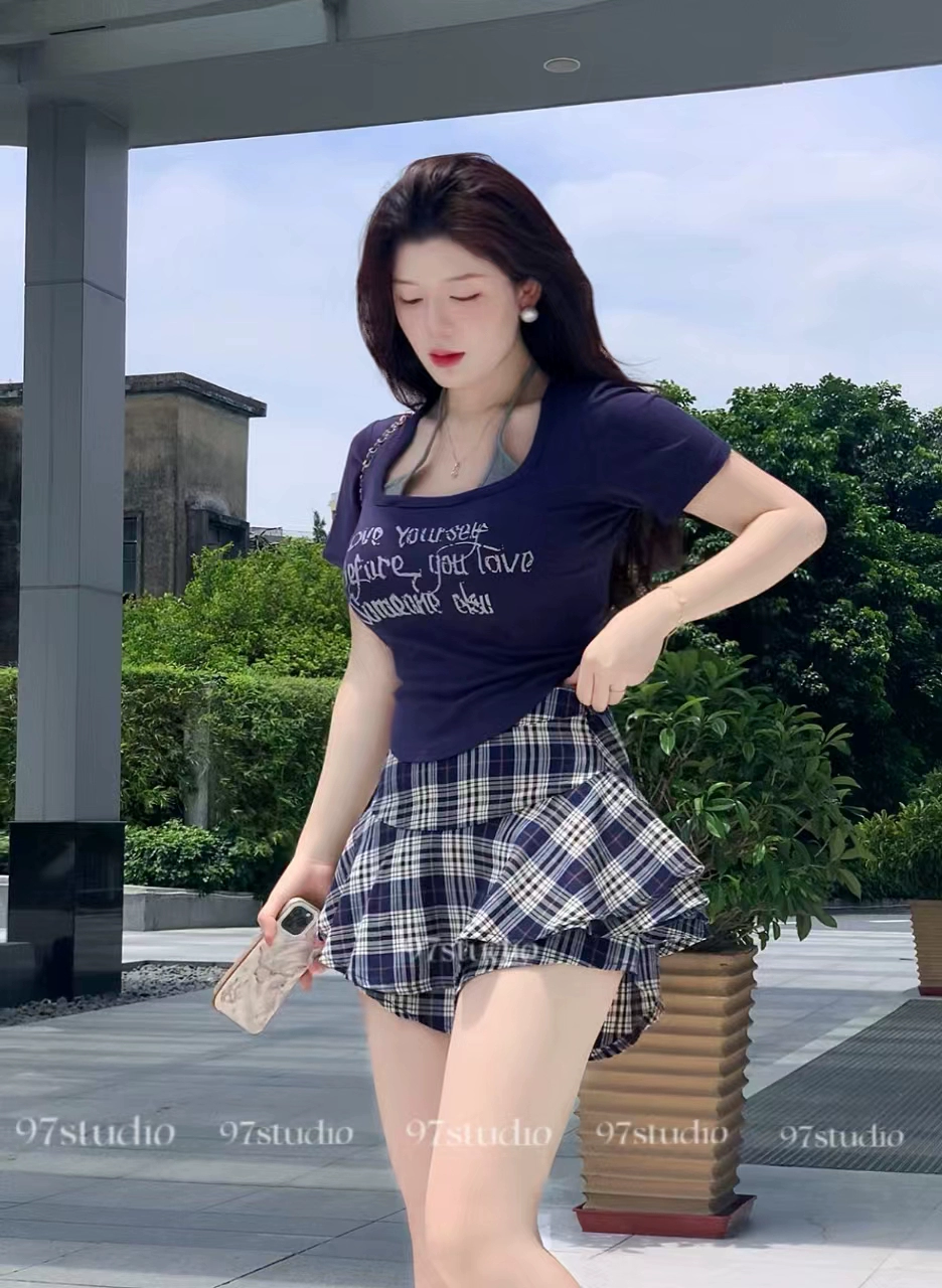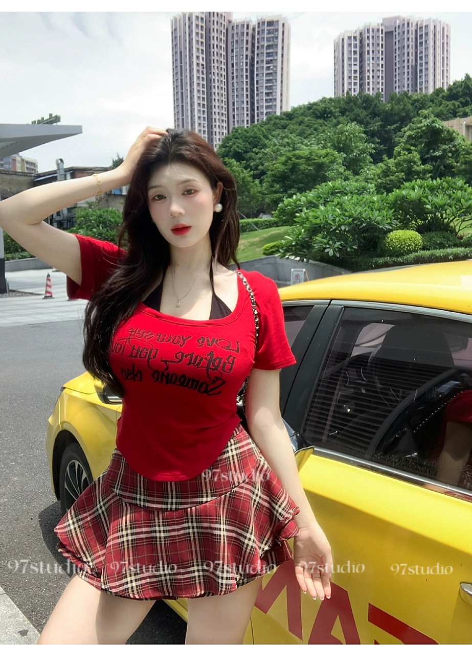 | nameOriginal | Summer waist-cinching sheer lust top, right shoulder short-sleeved T-shirt |
