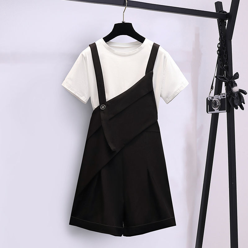 | nameOriginal | Summer wear a set of 2024 new plus size women's clothing fat sister all-match top personality suspenders two-piece suit |
