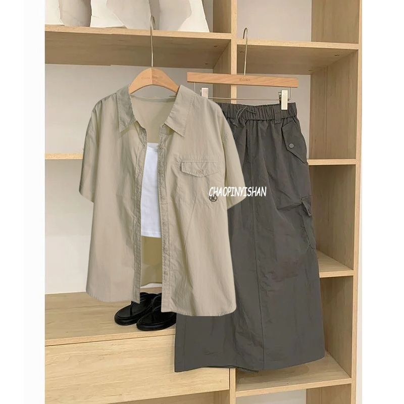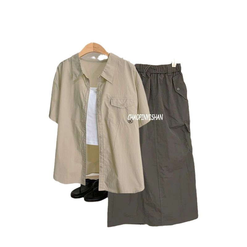 | nameOriginal | Summer wear a set of women's 2024 new retro fashion slim strap short sleeve shirt work skirt three-piece suit |