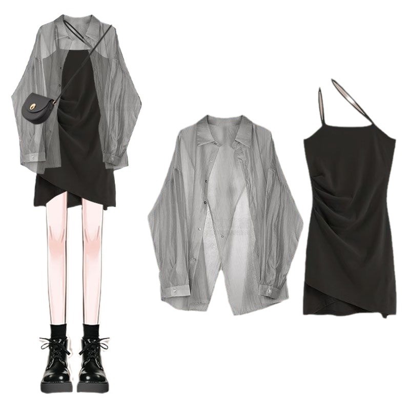 | nameOriginal | Summer Wear a Whole Set 2024 New Gentle Sunscreen Shirt Women's Slimming Sling Dress Two-piece Set |